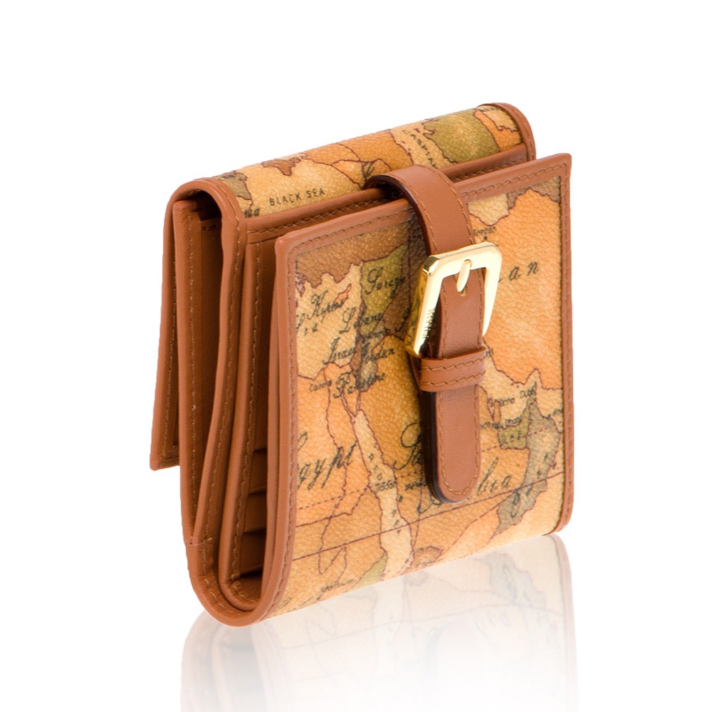 【Alviero Martini 義大利地圖包 】義大利地圖包 扣式8卡零錢皮夾-地圖黃