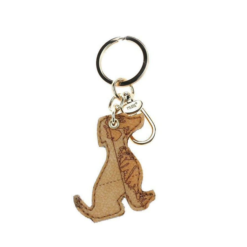 【Alviero Martini 義大利地圖包 】地圖狗狗吊飾鑰匙圈-地圖黃