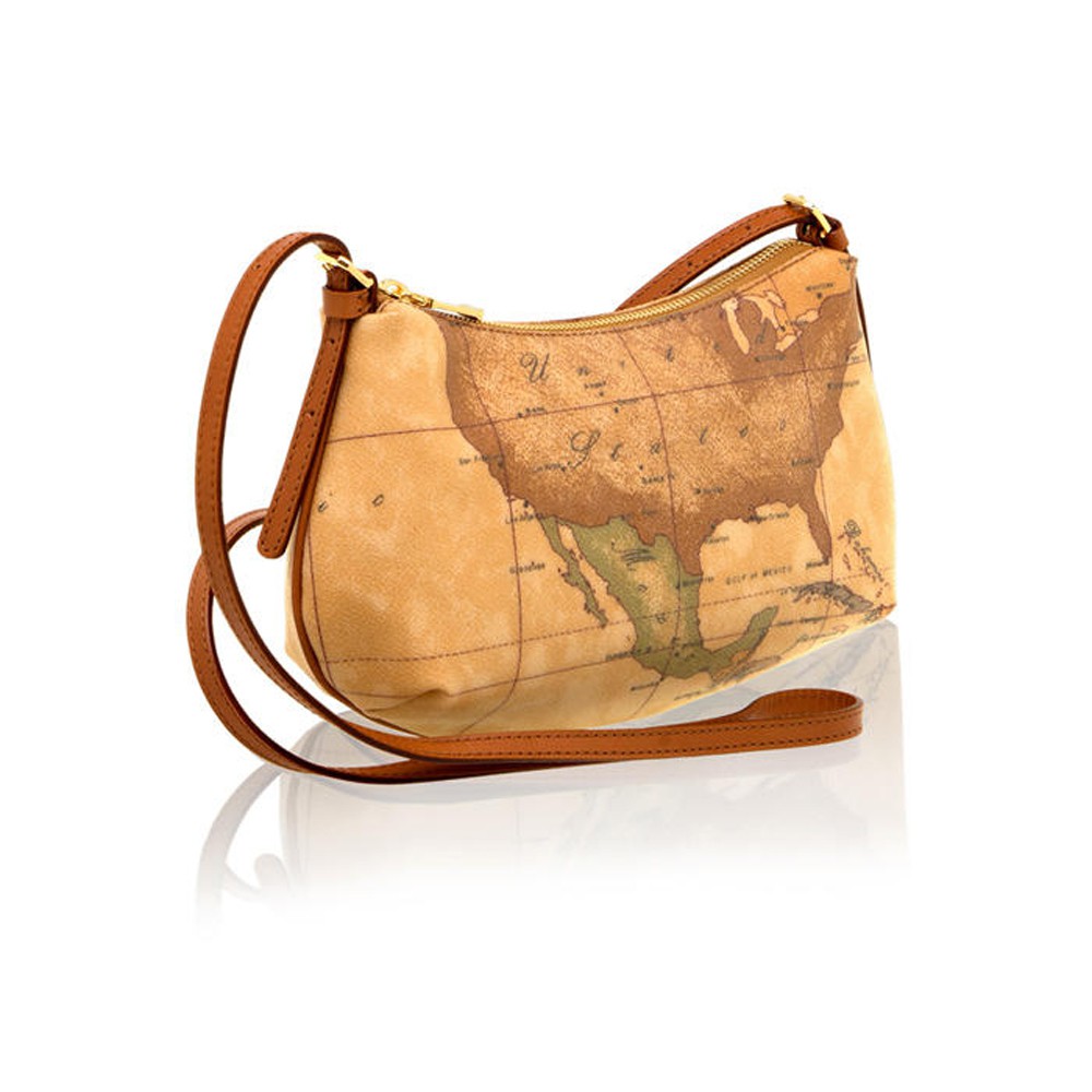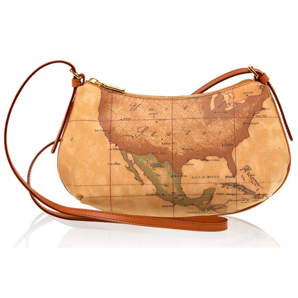 【Alviero Martini 義大利地圖包 】拉鍊斜側肩背包(地圖黃)