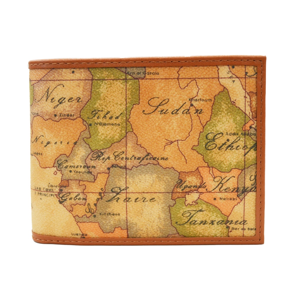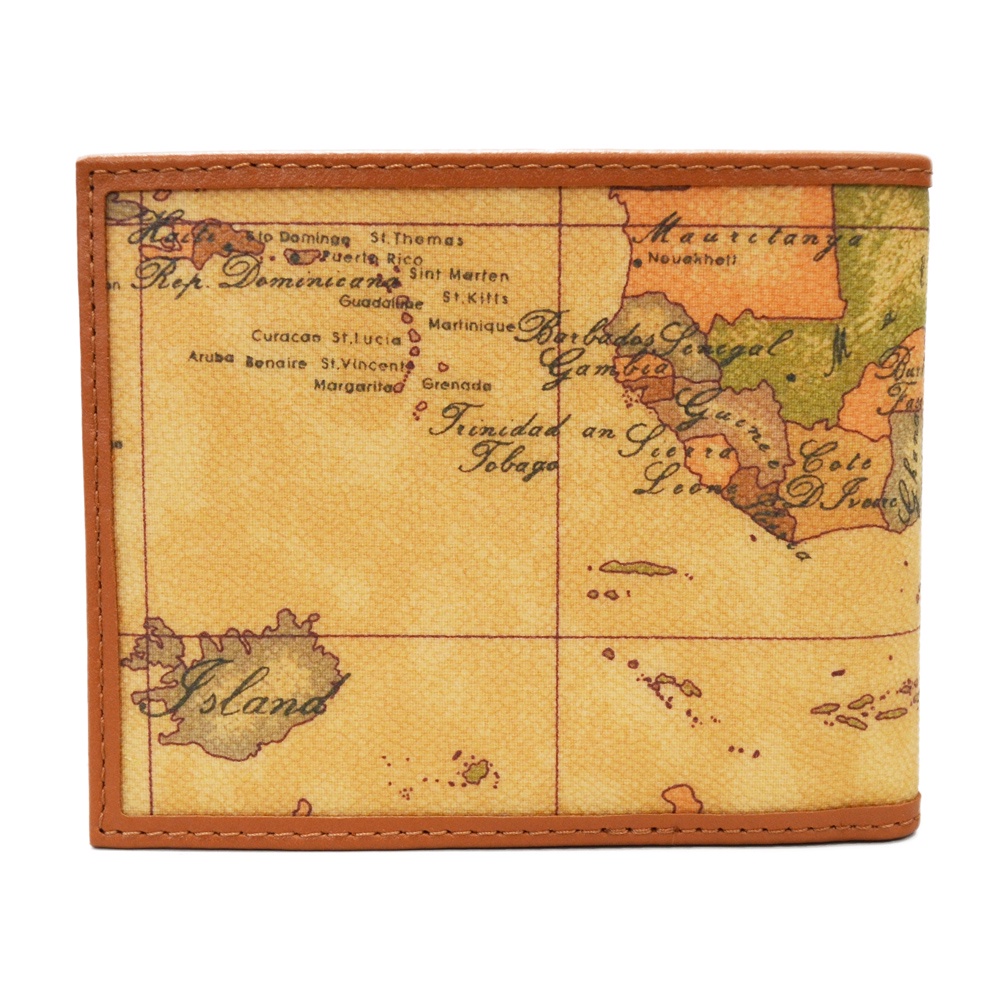 【Alviero Martini 義大利地圖包 】經典8卡雙夾層時尚短夾 皮夾-地圖黃