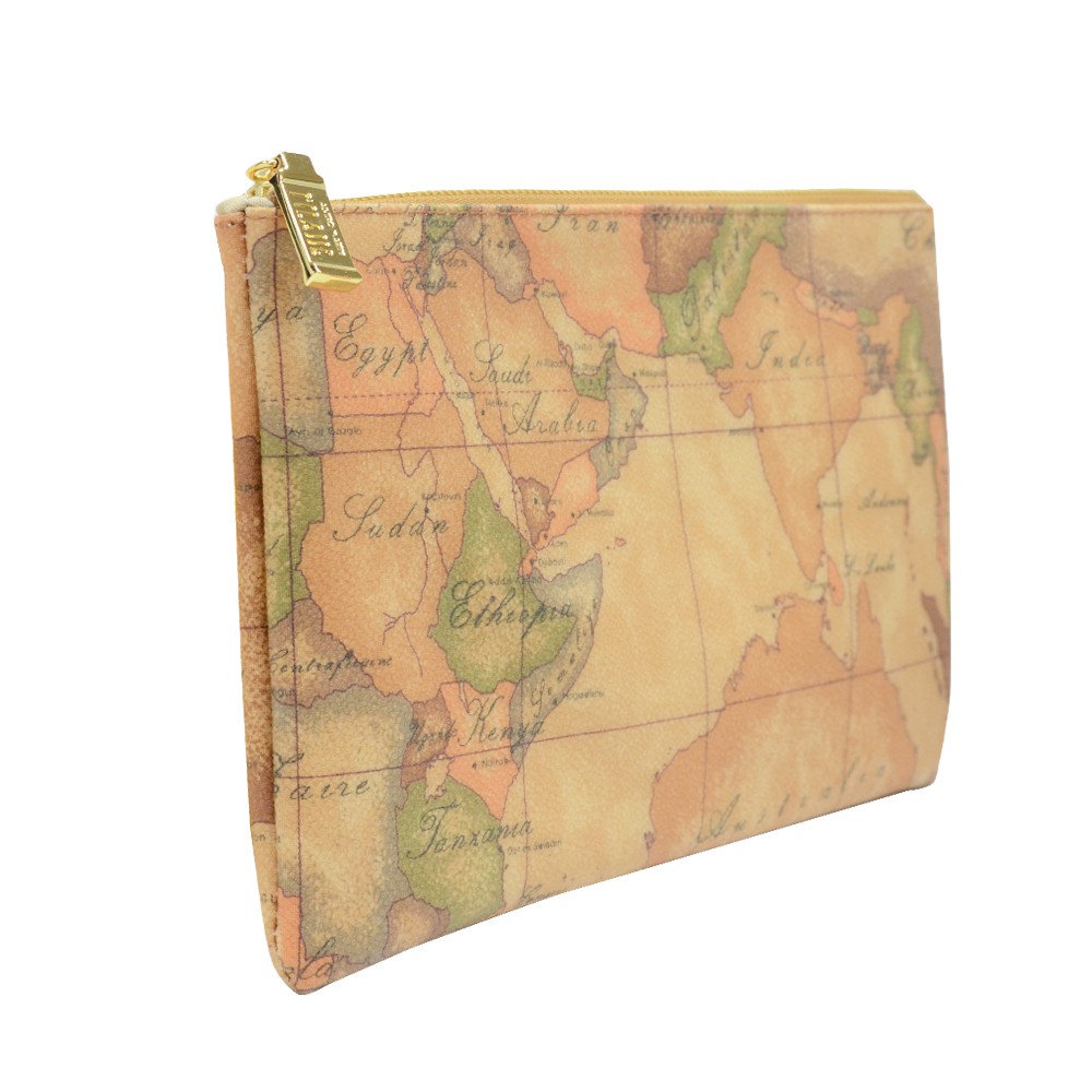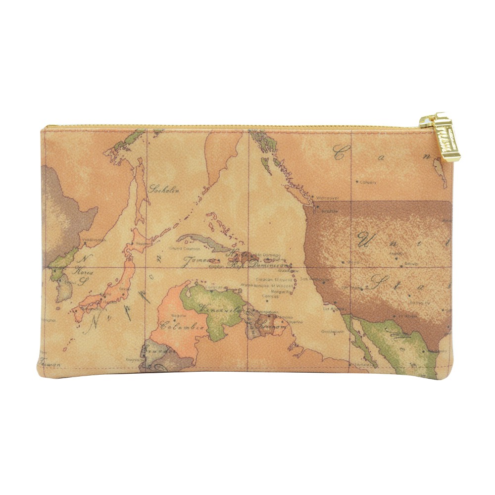 【Alviero Martini 義大利地圖包】拉鍊手拿化妝收納包(中)-地圖黃