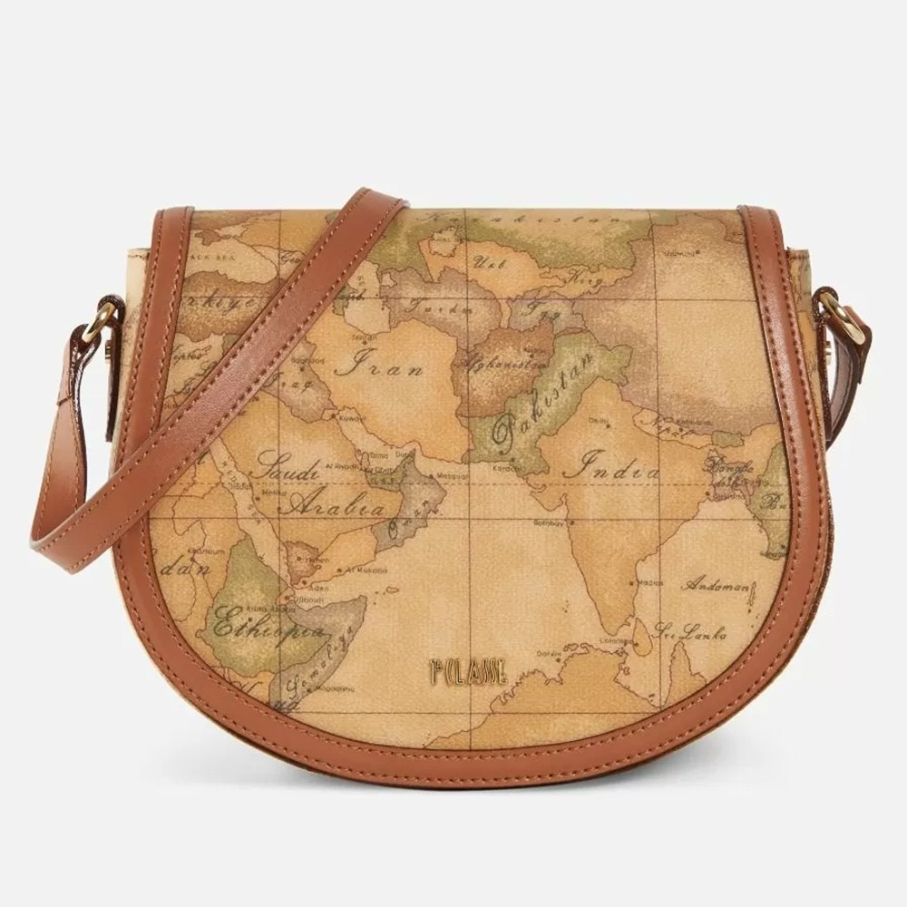 【Alviero Martini 義大利地圖包】側揹馬鞍包-地圖黃