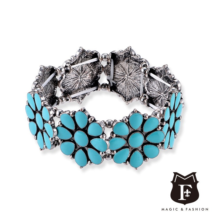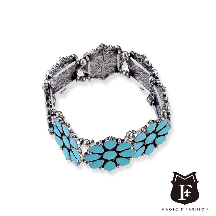 【MF SELECT】Boho Chic 美利公主系列 好萊塢土耳其藍寶石 花朵 伸縮手環 (MFHBR29137)