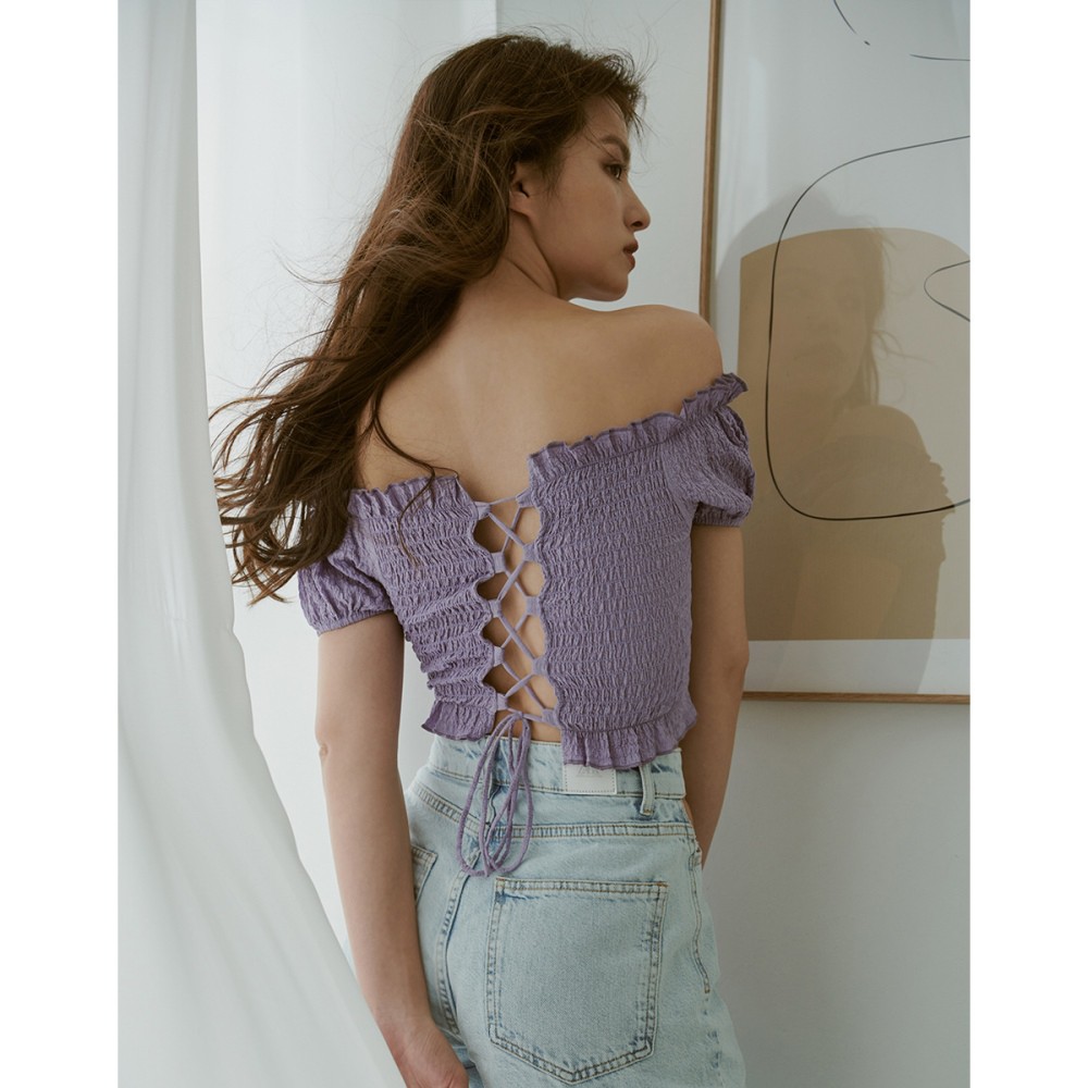 WAVE SHINE-荷葉捲邊交叉Bra上衣(二色)-女【B5LS019】