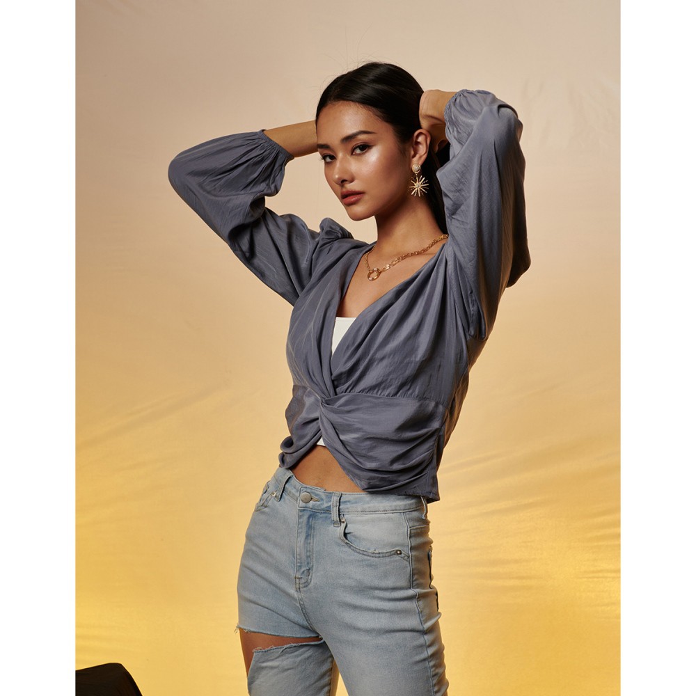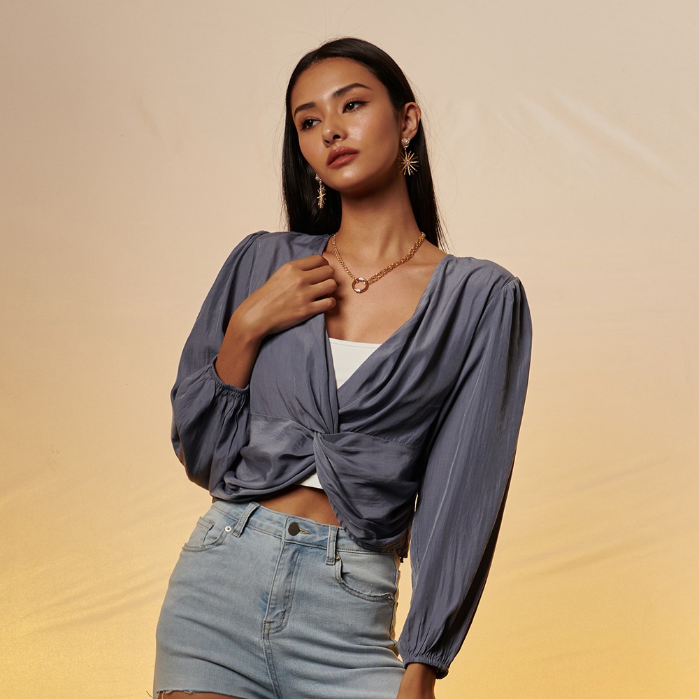 WAVE SHINE-復古扭結連袖上衣(二色)-女【C5LS001】