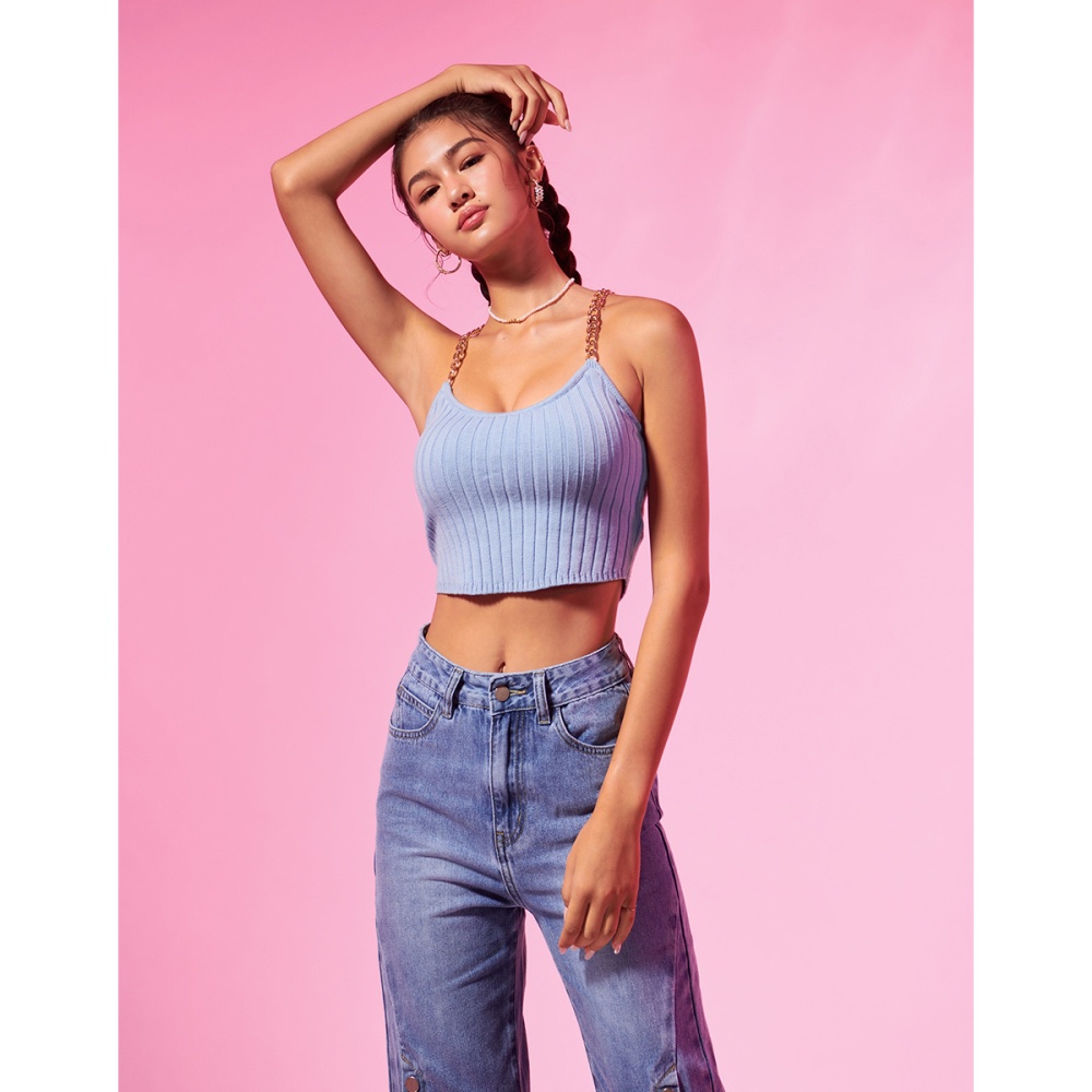 WAVE SHINE-金鏈針織美波bra top(二色)-女【E5LS031】