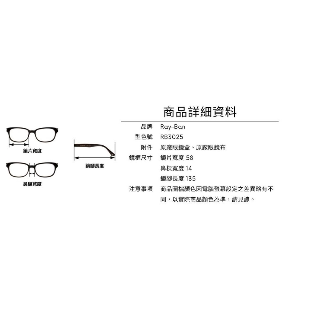 Ray Ban|RB3025-001/3E 飛行員太陽眼鏡【葛洛麗雅眼鏡】