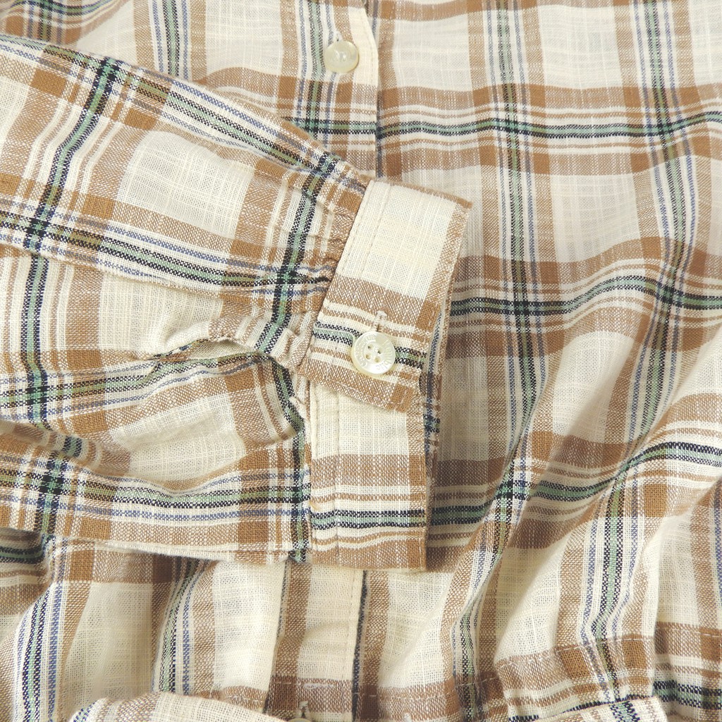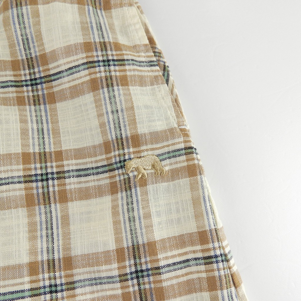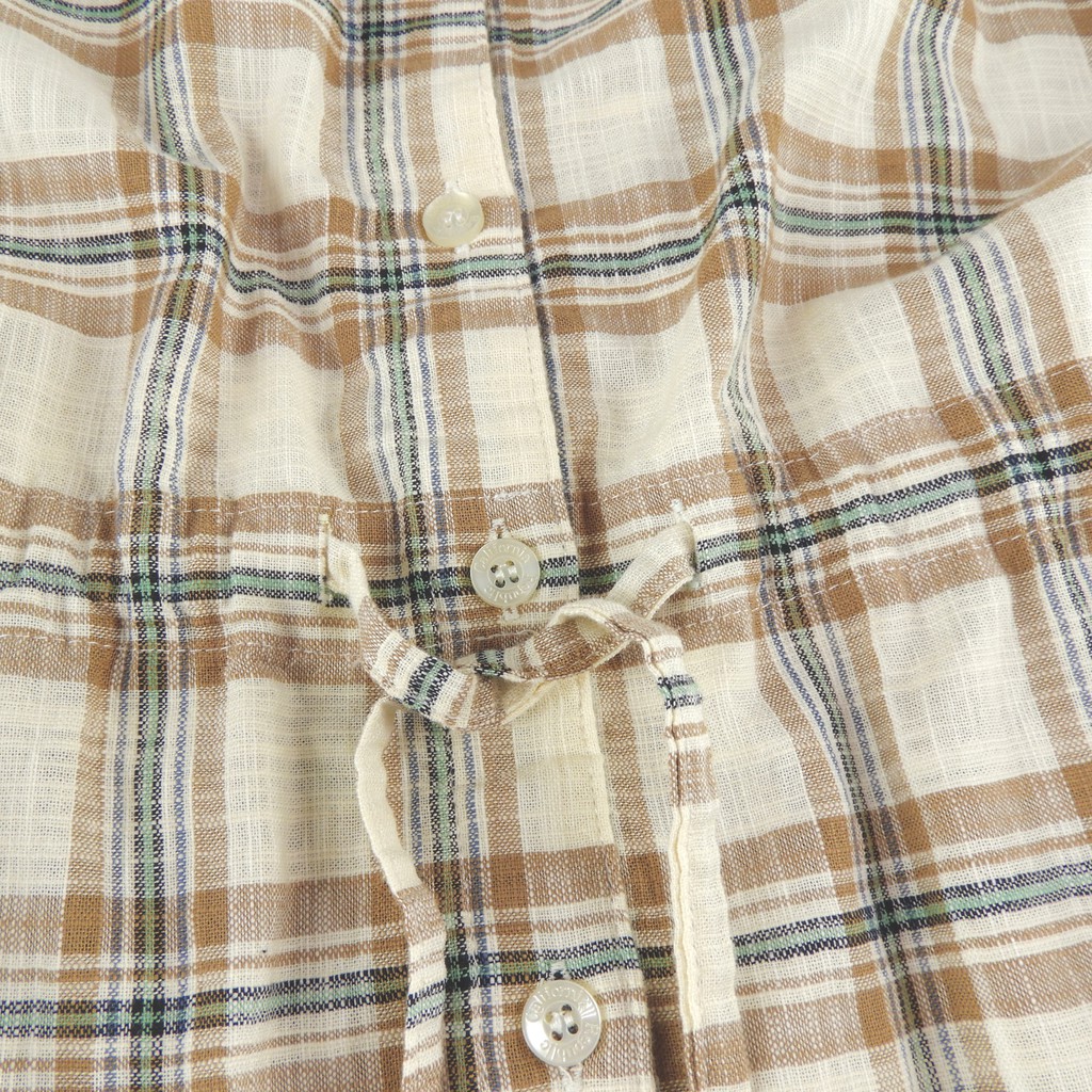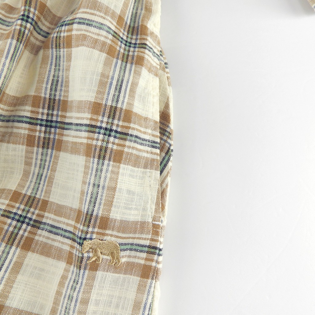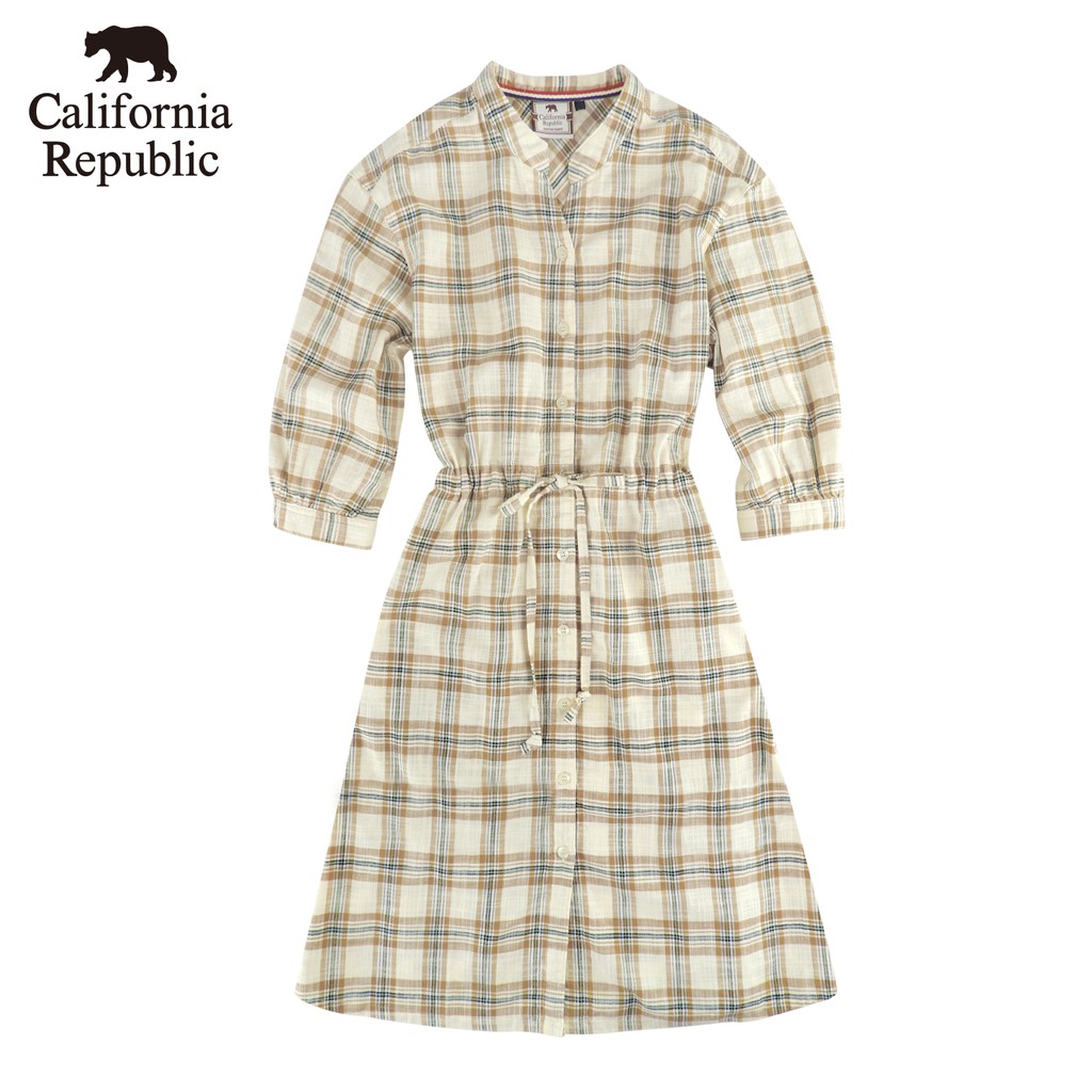 CALIFORNIA|棉麻觸感小熊格紋抽繩V領洋裝(女)