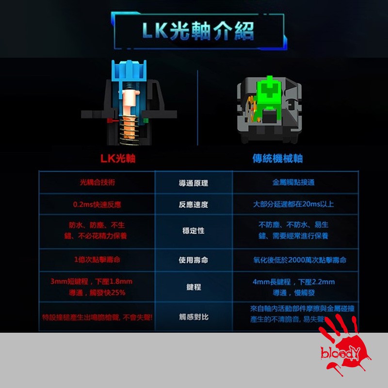 【A4 Bloody】B820R (青軸) RGB機械光軸2代電競鍵盤- 贈編程控健寶典及原廠鼠墊B087S