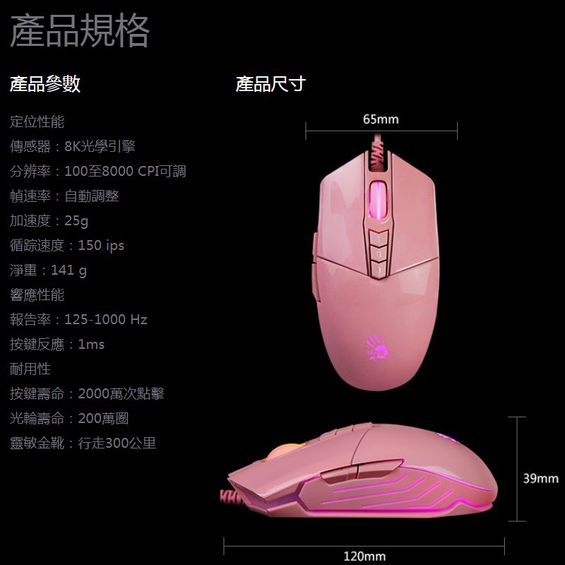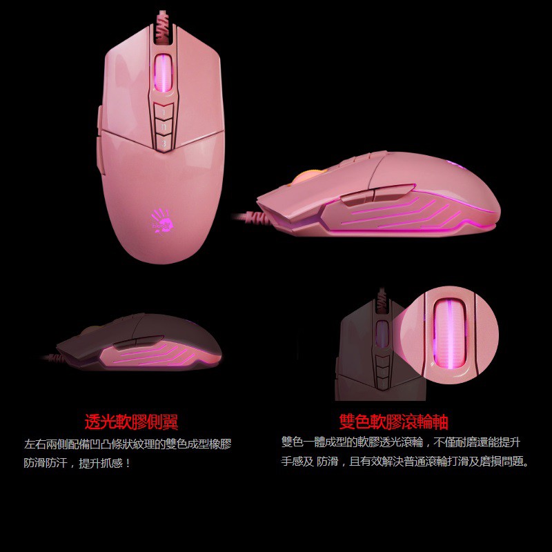 【A4 Bloody】 P91S 粉色光學電競手RGB彩漫遊戲滑鼠(已激活)-贈價值$350血手寶典 8