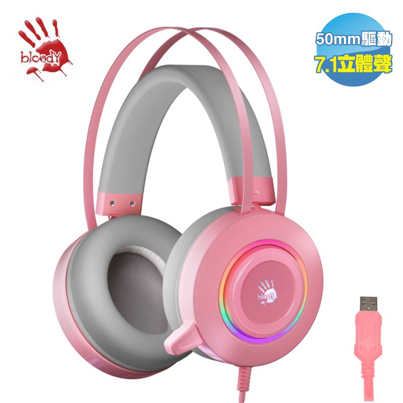【A4 Bloody】7.1虛擬聲道霓彩電競耳麥 G521粉色/白色/黑色