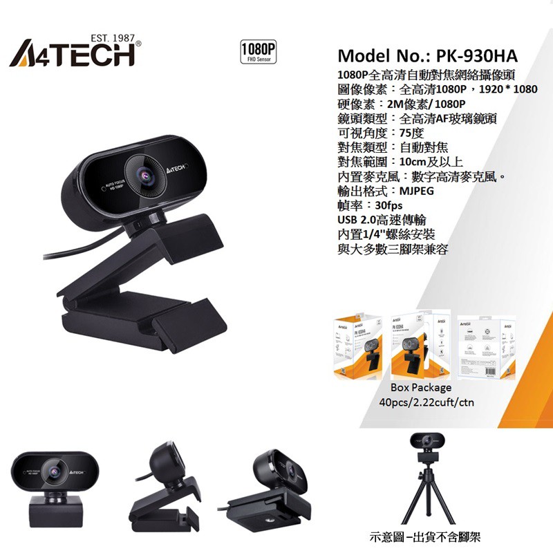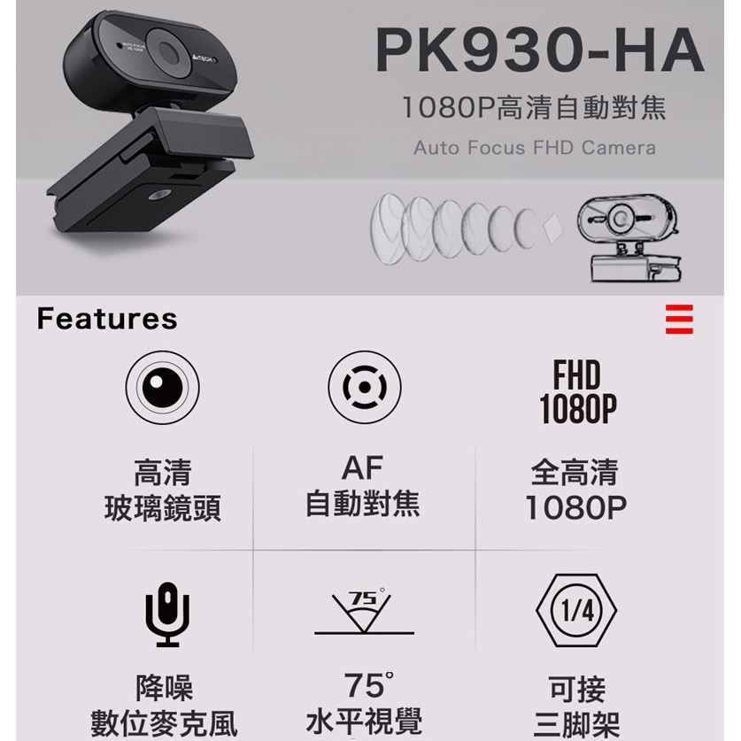 【A4 TECH 雙飛燕】PK-930HA 1080P HD自動對焦網路視訊攝影機