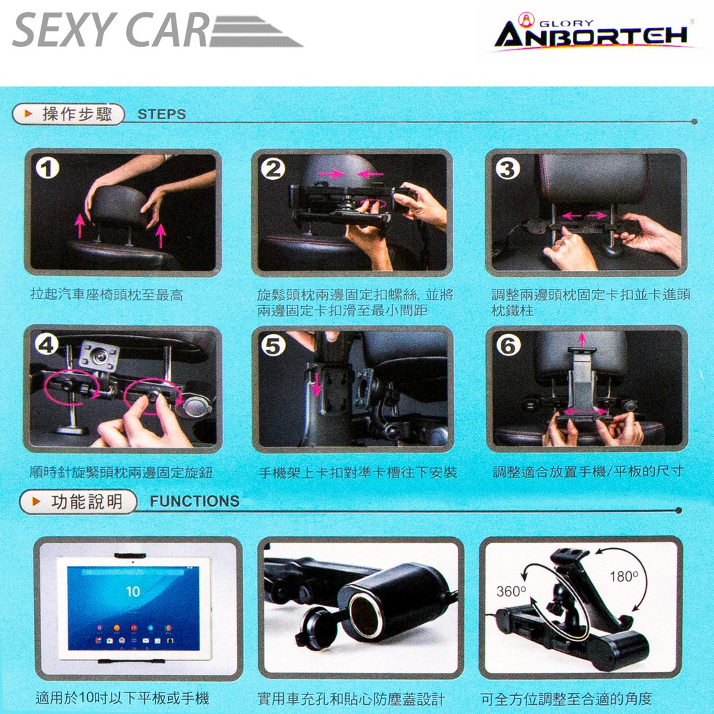 安伯特 酷電大師 椅背式車充手機架 ABT-E020-SC 頭枕桿固定式 3.1A 雙USB 單孔點煙器插座 平板電腦