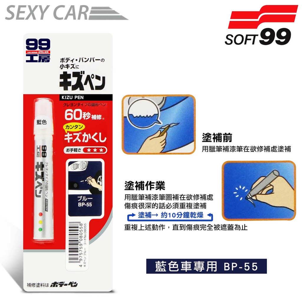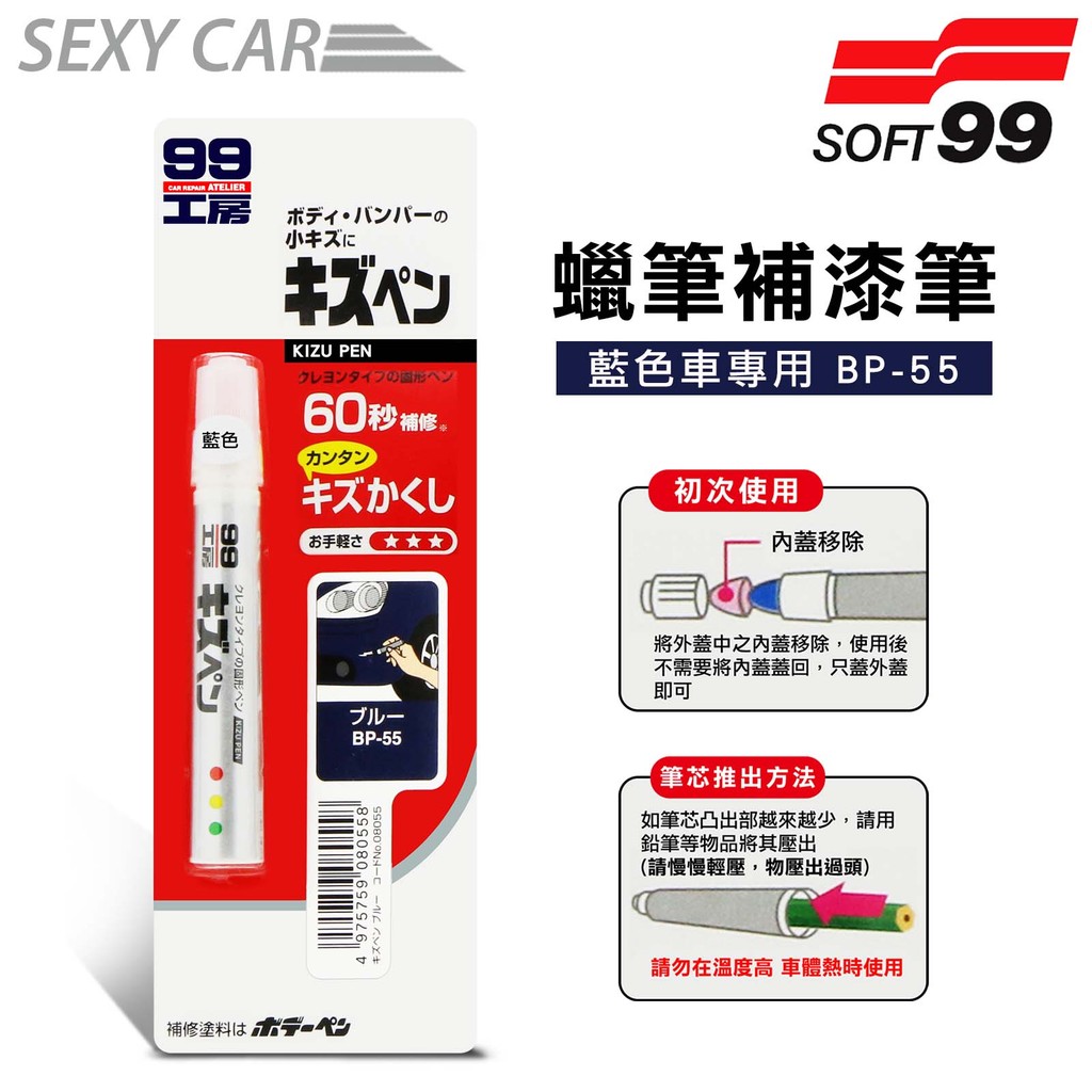 日本SOFT 99 蠟筆補漆筆 (藍色 BP-55) - SC 腊筆 補漆筆 機車 汽車補漆筆 適合未傷漆底的刮痕