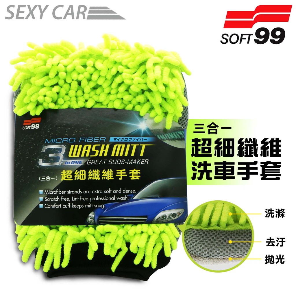 SOFT99 超細纖維手套(三合一) 去污 除塵 極易吸附油污 灰塵顆粒 洗車手套 汽車擦車巾 擦車手套