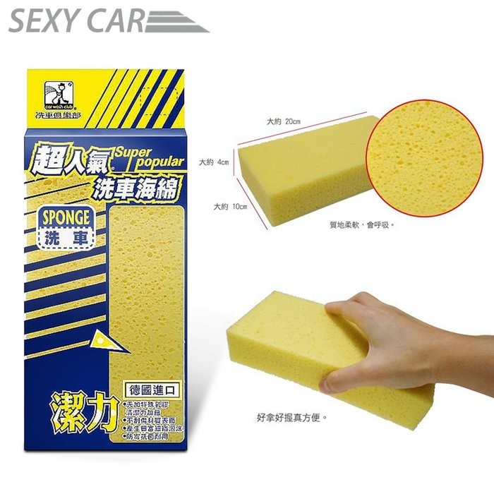 SC-超人氣 潔力海綿 高密度柔嫩洗車海綿 J1004 黃 高密度柔嫩 洗車海棉 洗車綿 配洗車精使用 防刮傷