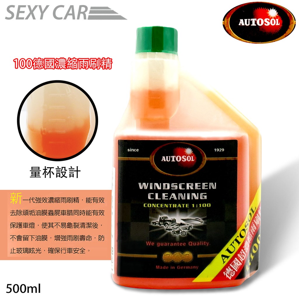 AUTOSOL 1:100德國濃縮雨刷精 500ml 去除油膜 消除眩光 雨刷水 雨刷添加劑 汽車美容車體鍍膜洗車