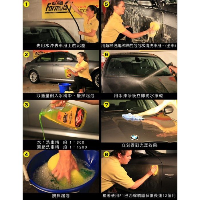 Formula1 高科技棕櫚光澤洗車精-SC 泡沫豐富 深層清潔力強 洗車後增加棕櫚腊的光澤 高泡沫