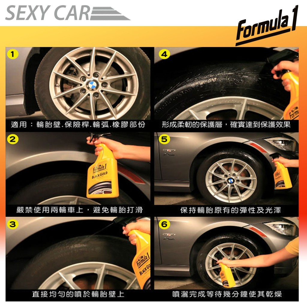 Formula1 黑金 長效輪胎光澤劑 15258 保險桿 輪弧 橡膠 上等的硅樹脂聚合物 深層自然的光澤