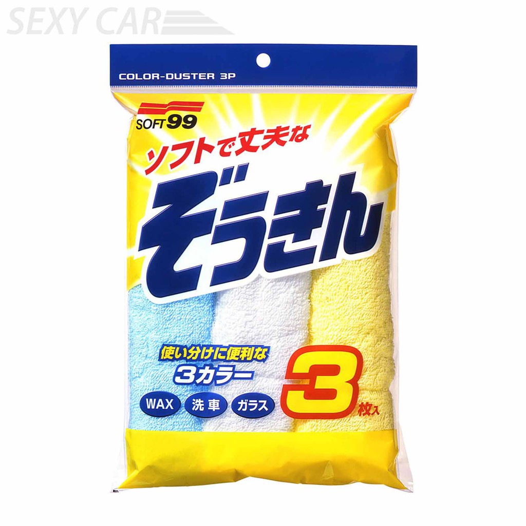 SOFT99 彩色抹布(3條裝)SC -日本 良好吸水性和耐久性 打蠟後的擦拭 洗車後擦乾 汽車美容