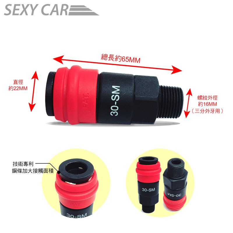 SEXY CAR 氣動快速接頭-30SM外牙塑鋼材質+厚材質 空壓機 氣動頭 快速接頭
