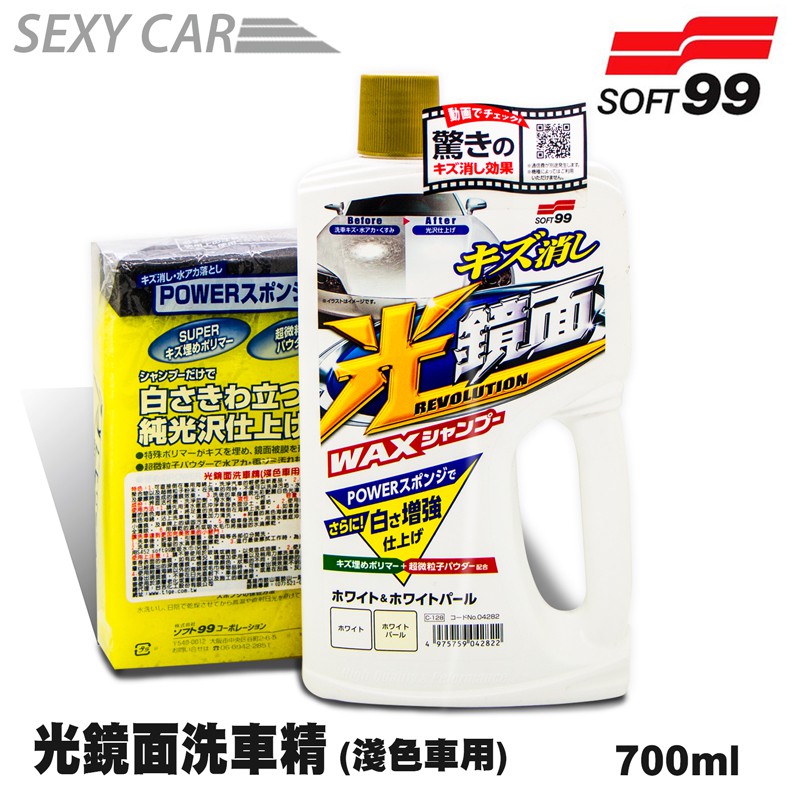 SC-SOFT99 光鏡面洗車精(淺色車用) 贈洗車海綿 超微粒子粉末 填補車身表面傷痕 中性洗車精 DIY 汽車美容