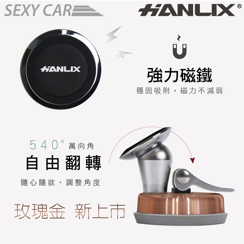 HANLIX Hodi 3C手機磁吸行動支架-金 (磁石式多功能手機支架) -SC 手機架 行車紀錄器吸盤式 美觀方便