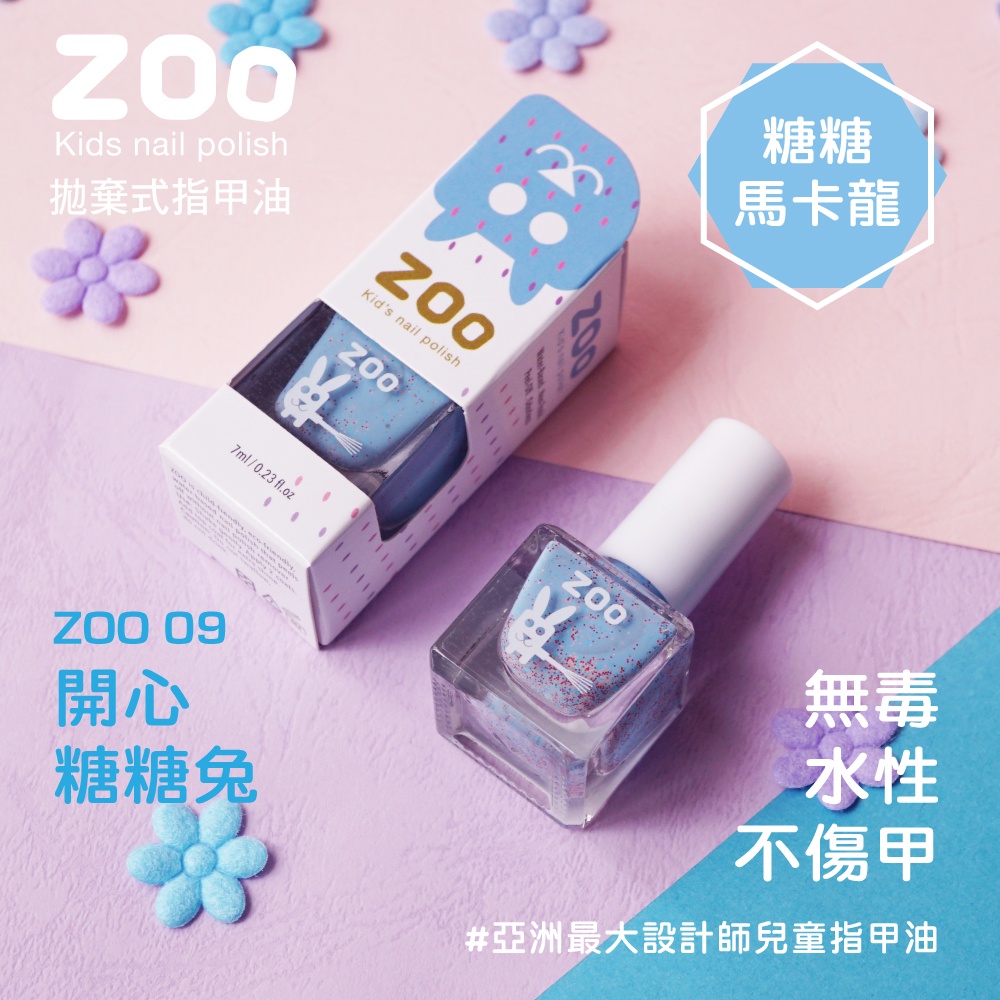 ZOO 兒童指甲油 (糖糖馬卡龍) 09 開心糖糖兔 (糖果亮片天空藍) 兒童生日禮物 小朋友生日禮物 女童玩具 美甲