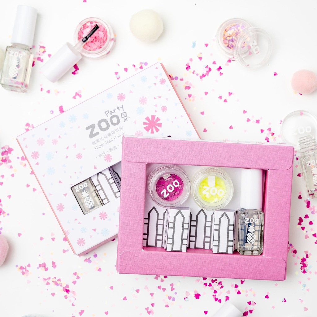 ZOO 兒童指甲油 ZOO Party 螢光亮片遊戲組 咩橘可magic派對 花花鳳梨 生日禮物 美甲組合 點珠筆
