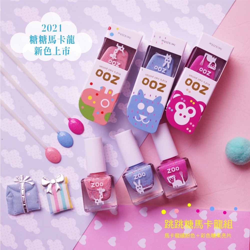 ZOO 兒童指甲油 跳跳糖馬卡龍 三件組 禮盒包裝 水性指甲油 兒童指甲油可撕無毒 女孩玩具 小孩玩具 兒童化妝