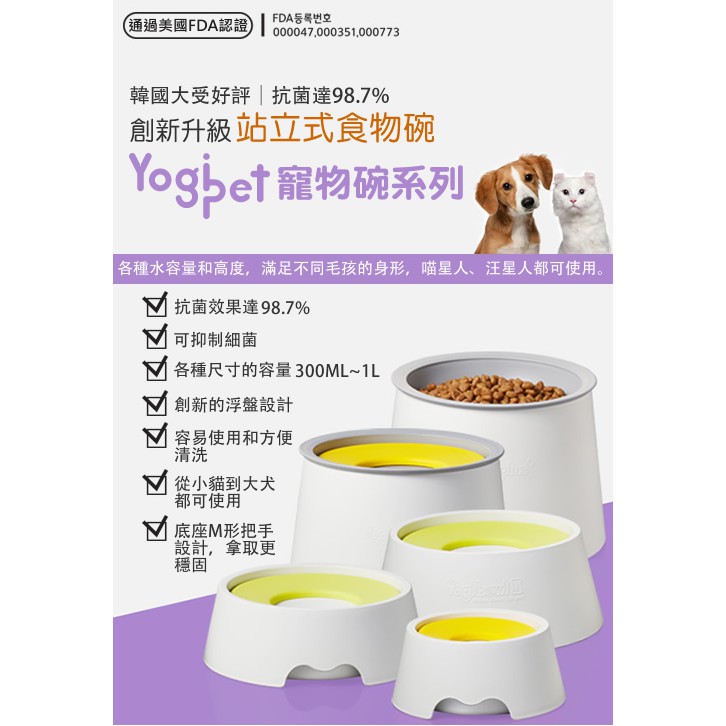 韓國YogiPet 與毛孩的美好生活小物|抗菌98.7% 寵物食物碗/站立款 (適合3-10kg貓狗)