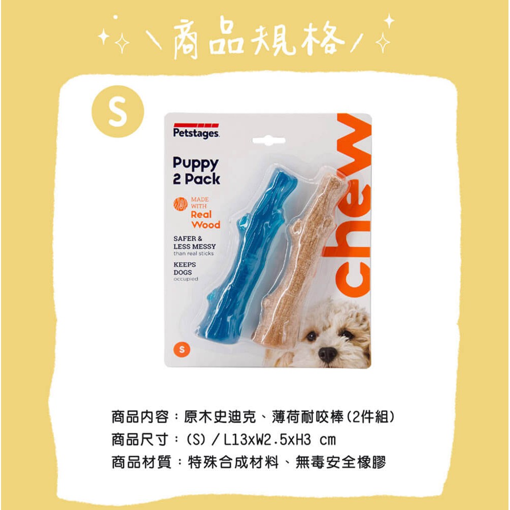 美國Petstages耐咬史迪克2件組|原木味+薄荷味|S-幼小型犬|天然木頭合成潔牙骨啃咬玩具耐咬玩具寵物磨牙幼犬磨牙