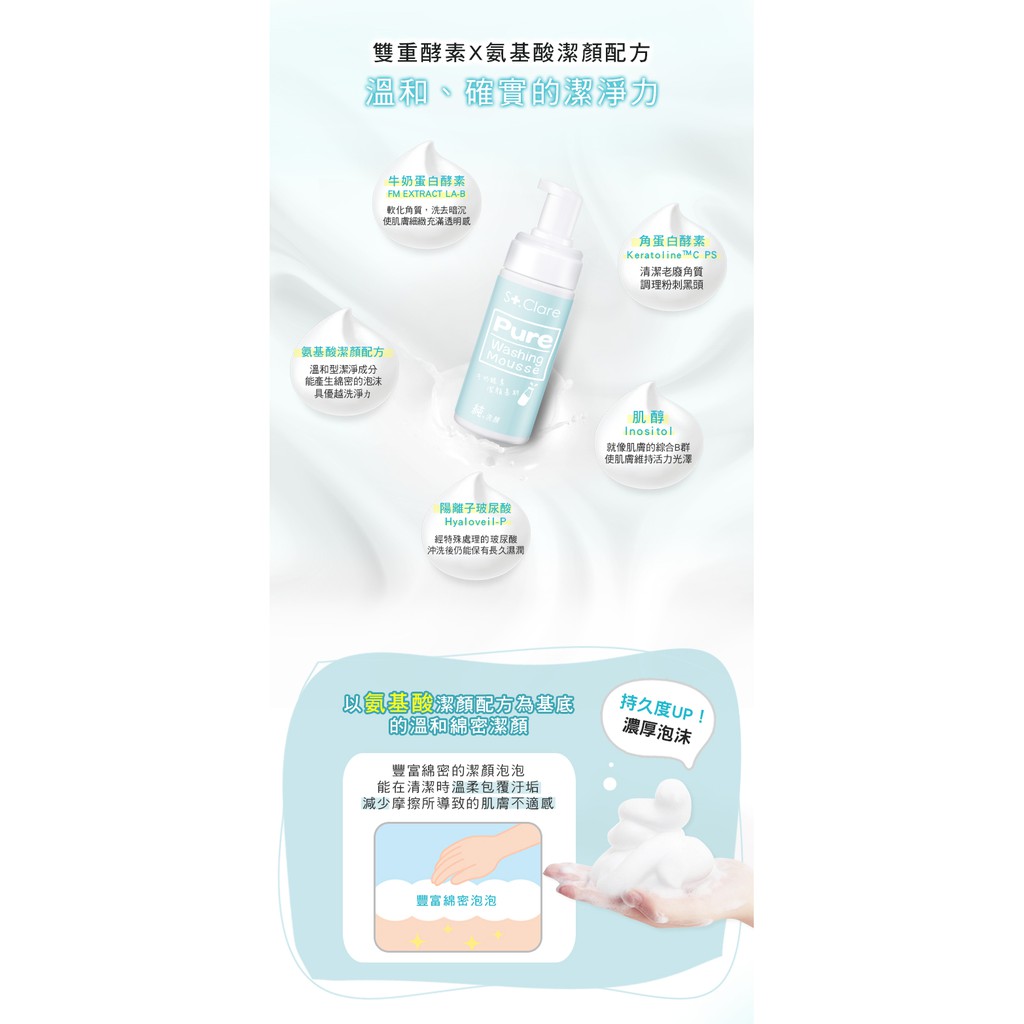 St.Clare 聖克萊爾 純洗顏牛奶酵素潔顏慕斯150ml(氨基酸配方/醫美後適用清潔)