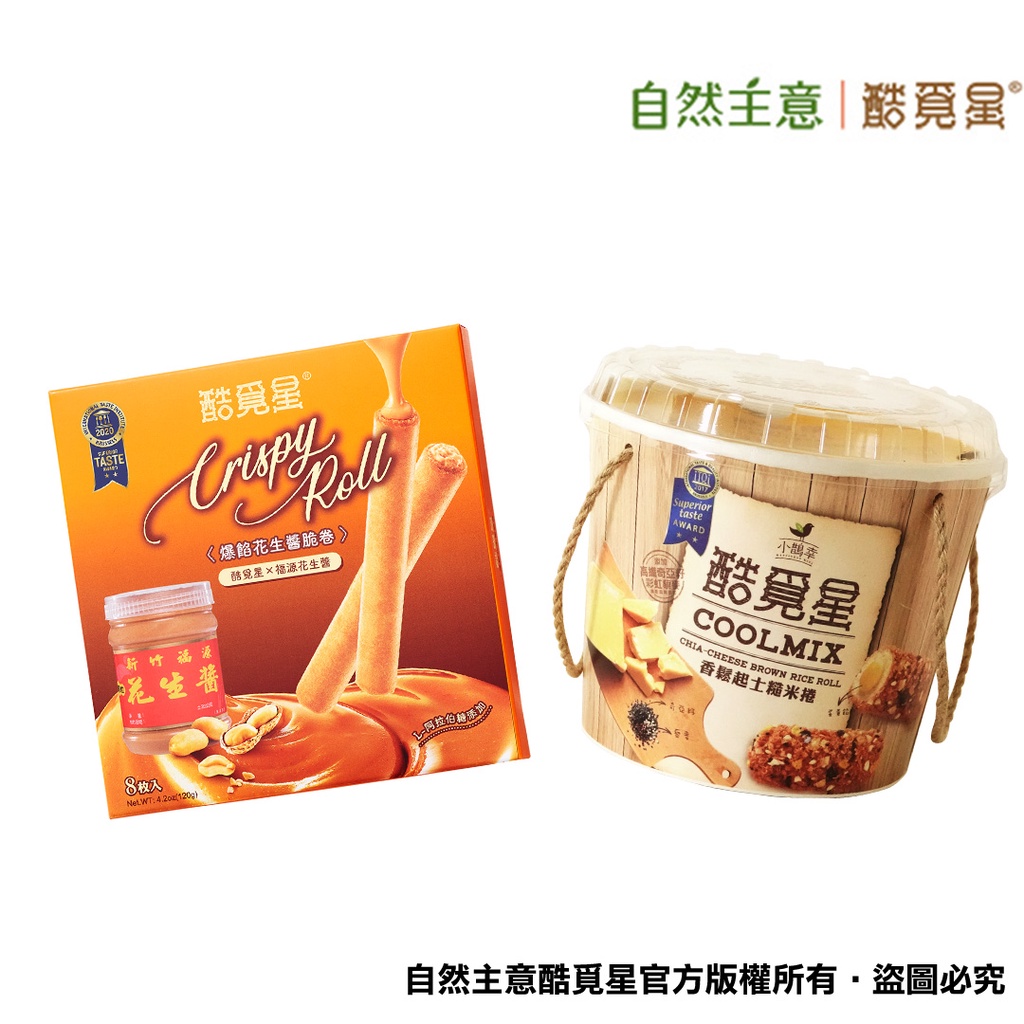 【酷覓星】香鬆起士糙米捲(15入/葷)*1桶+福源爆餡花生脆卷*1盒