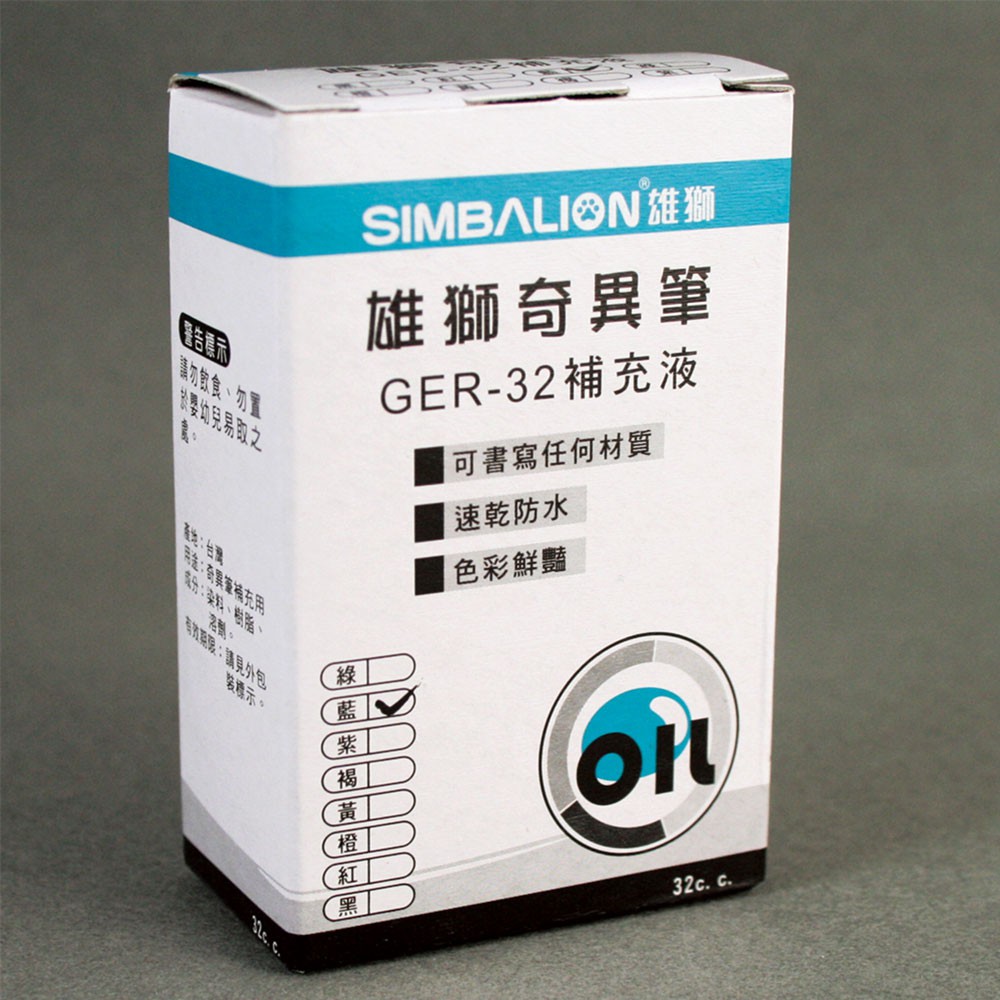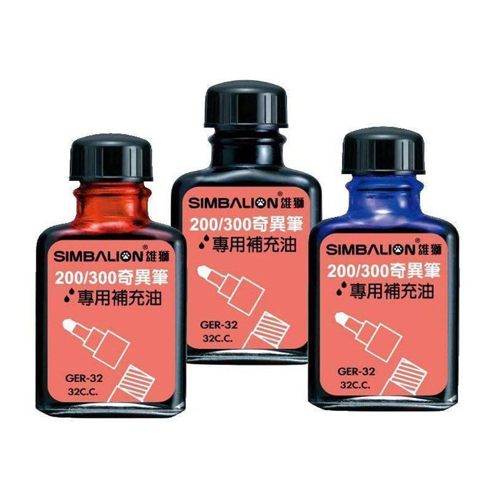 雄獅SIMBALION 奇異筆補充油 GER-32 紅黑藍 32cc,瓶 奇異墨水筆 多色型記號筆 專用補充墨水