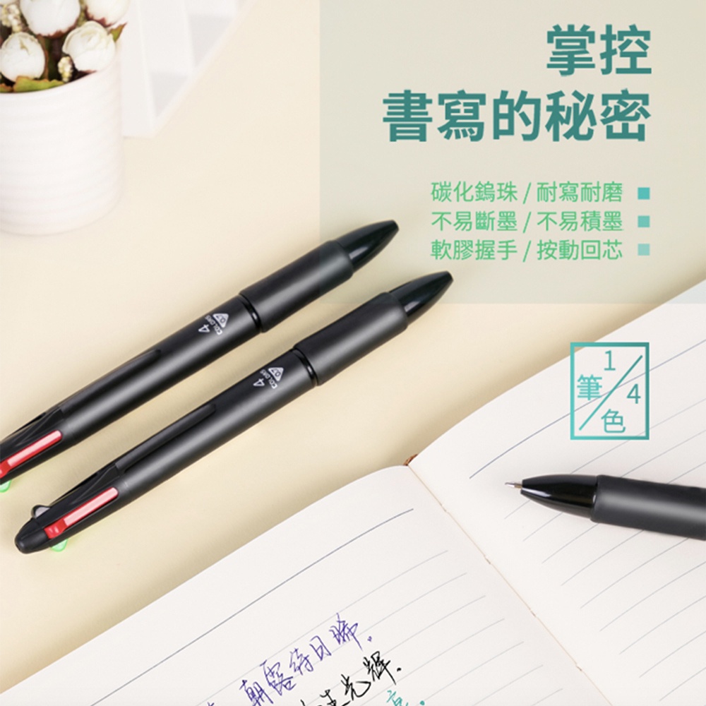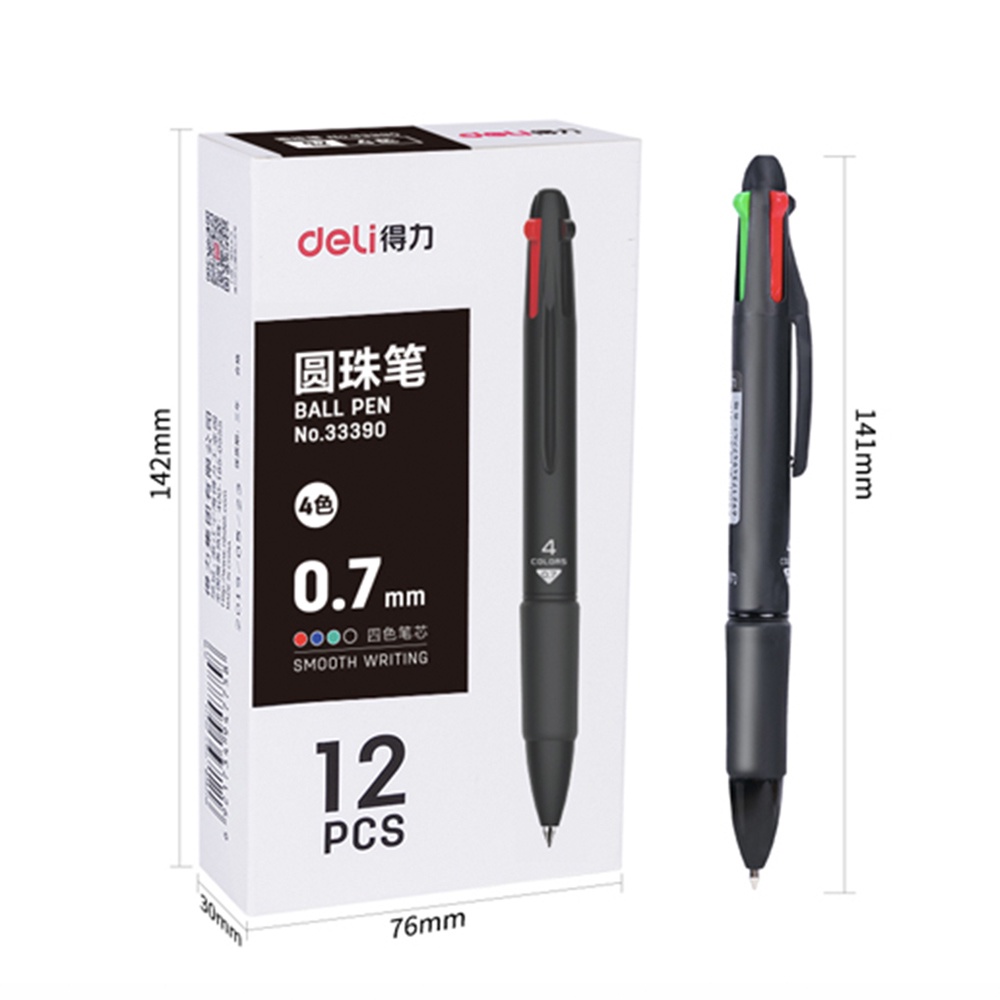 得力Deli 四色鋼珠筆0.7mm(33390) 多合一原子筆 四色原子筆 0.7mm鋼珠筆 鋼珠筆 一筆四芯 按壓式