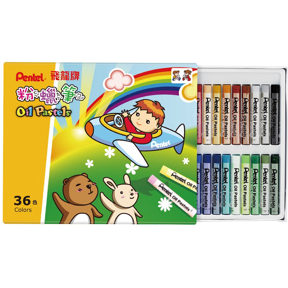 飛龍Pentel 粉蠟筆 安全認證兒童繪畫用蠟筆 繪圖畫畫筆 彩鮮明質地柔細 16色/25色/36色|史泰博EZ購
