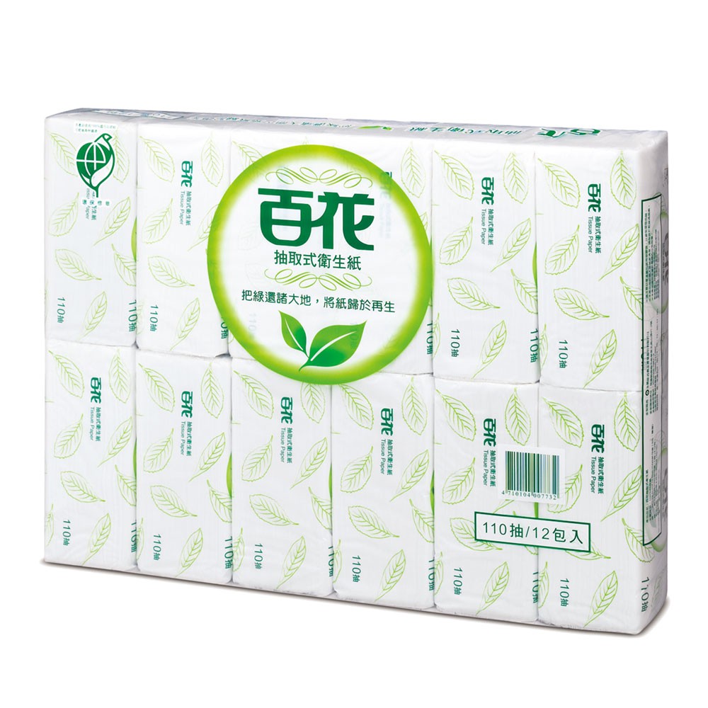 百花 環保抽取式衛生紙 抽取式衛生紙 連續抽取式衛生紙 廁所用紙 110抽 12包,6串/箱|史泰博EZ購