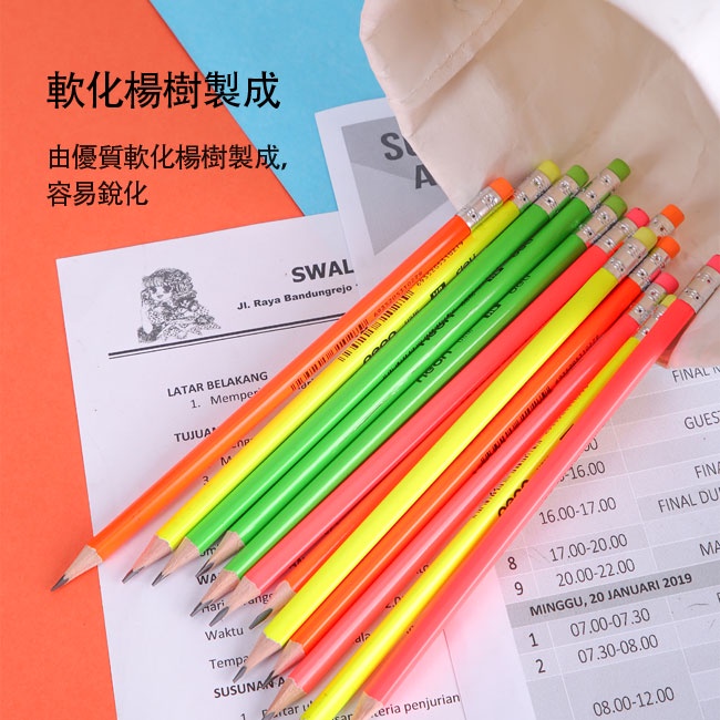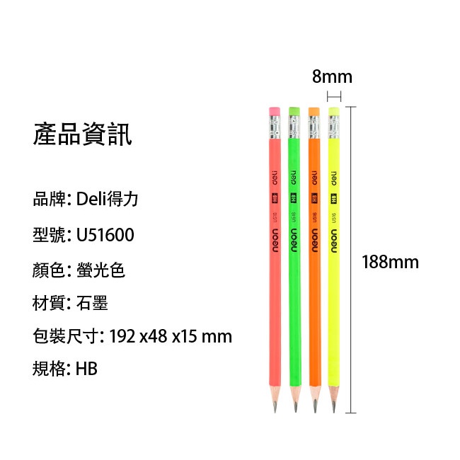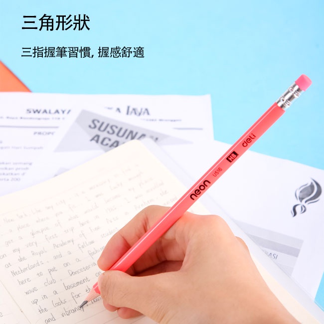 得力Deli 三角皮頭螢光筆桿HB鉛筆-12支(U51600) 筆芯 鉛筆 hb筆芯 0.5mm自動筆芯 六角 學生鉛筆