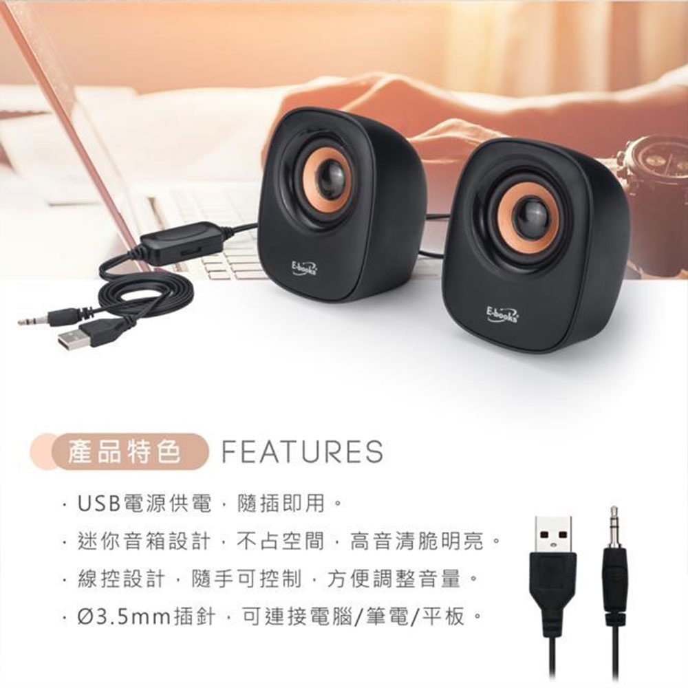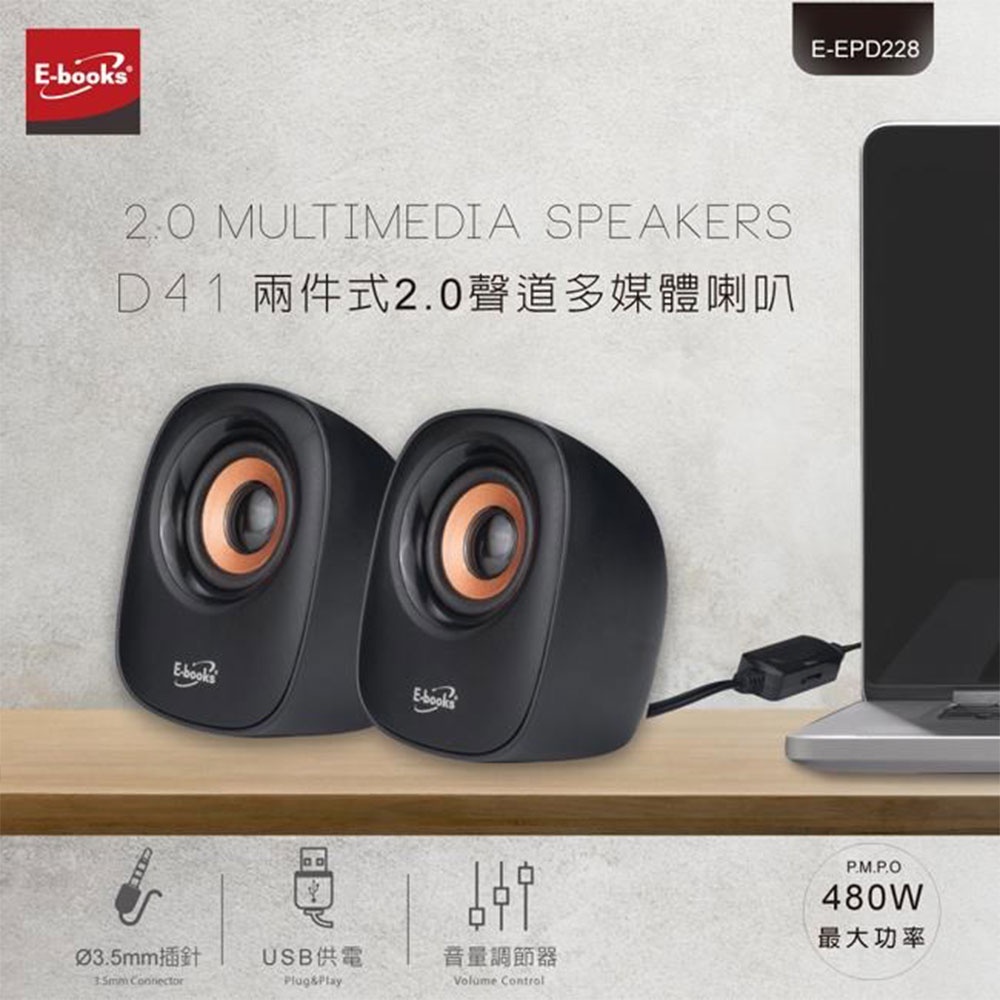 E-books 兩件式多媒體喇叭 D41 迷你音箱 小型音響|史泰博