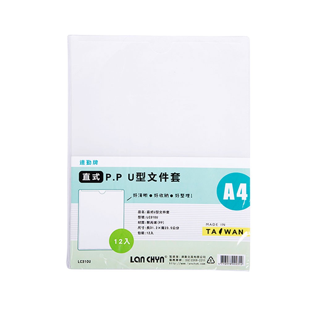 連勤LAN CHYN PP透明U型文件套LC-310U 白 12入/包 【超取上限15包】資料收納夾 |史泰博EZ