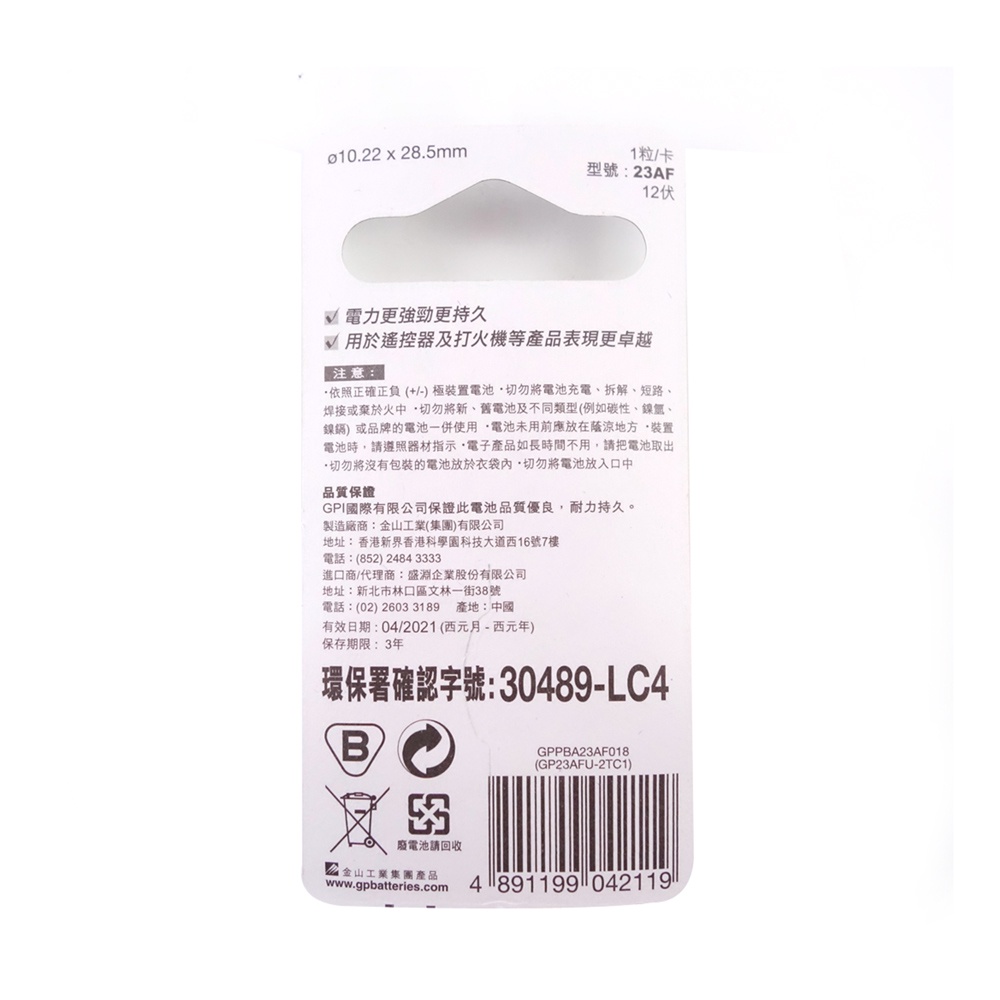 GP 超霸高伏特電池 12V 23A 1入/卡 持久電池 鹼性環保電池 電子產品用電池 麥克風電池 耳溫槍電池