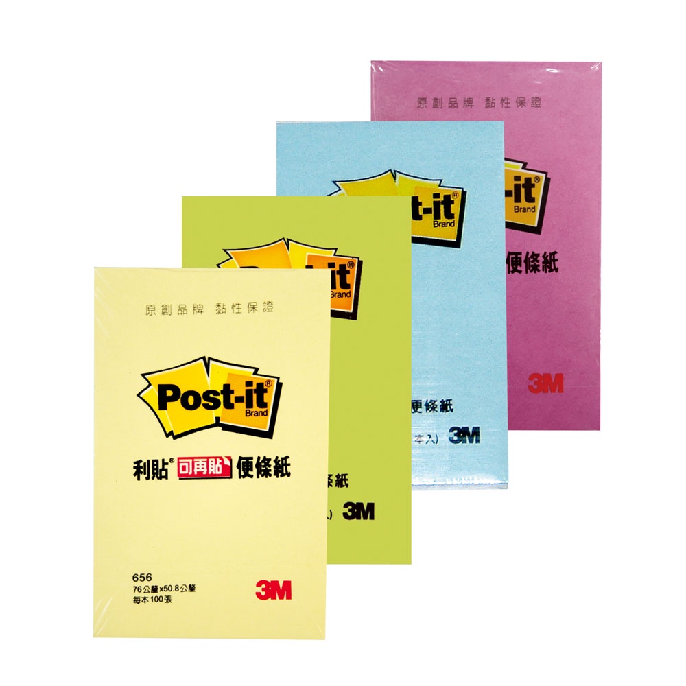 3M 利貼3x2便條紙 黃/藍/粉紅/綠 100張 可再貼 重複貼 便條紙 留言紙 MEMO紙 環保便條紙 備忘貼
