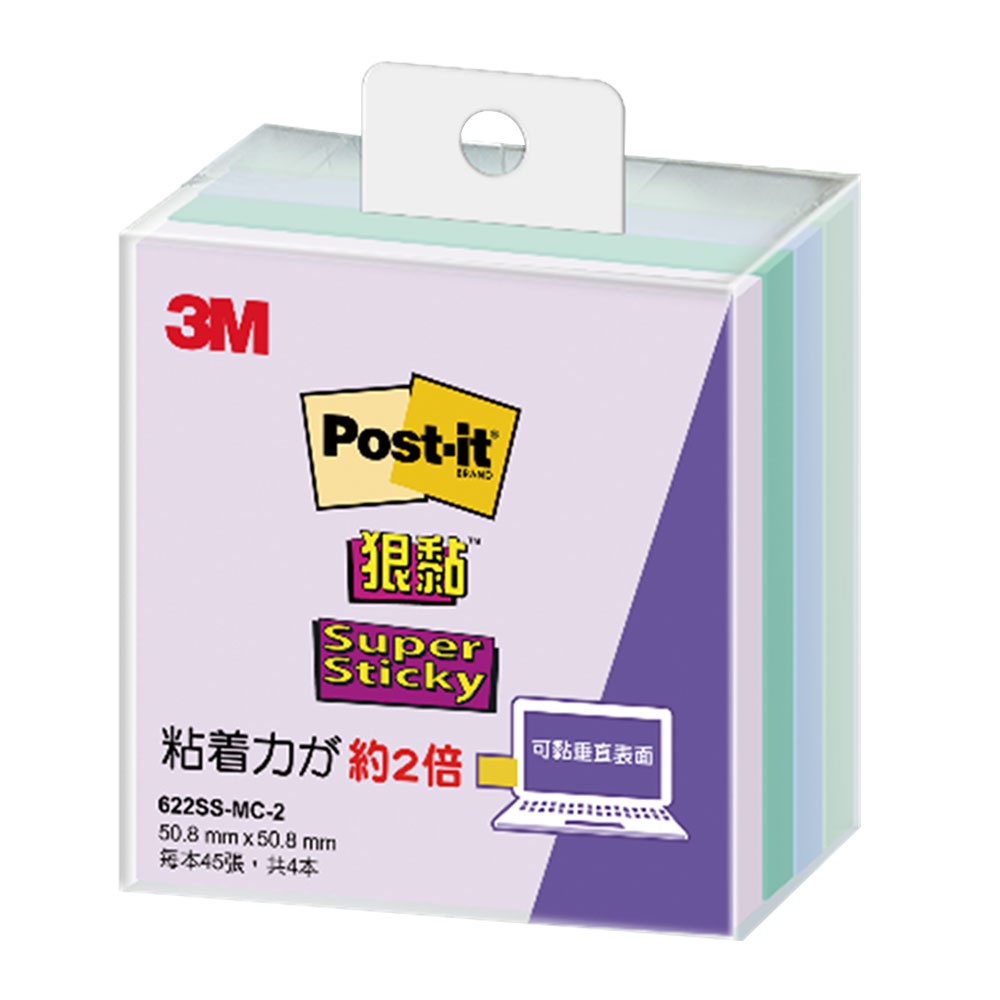 3M Post-it利貼狠黏便條紙 622SS-MC 混色 45張x4本/盒 便條貼 memo紙|史泰博EZ購