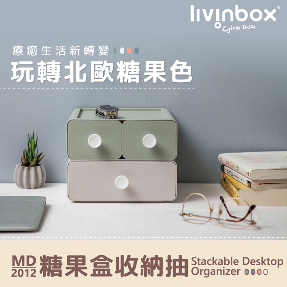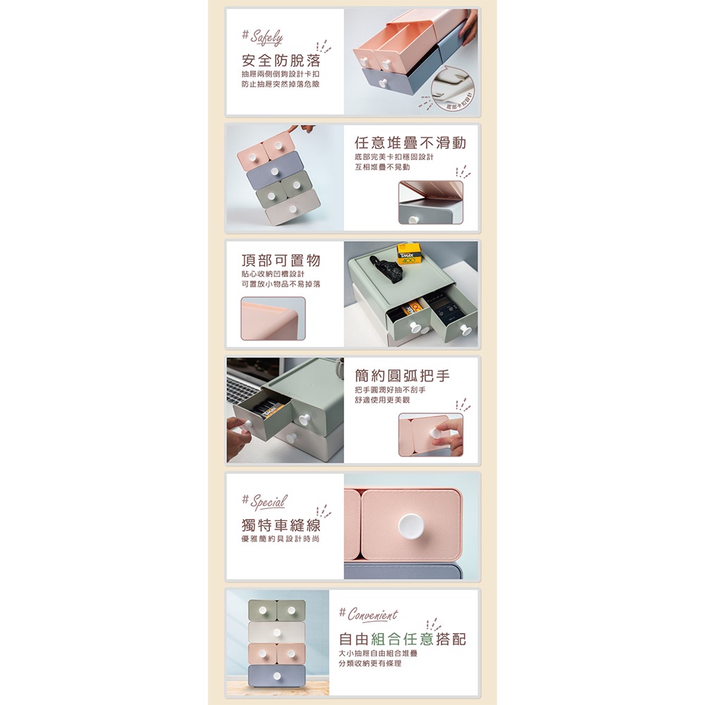 樹德SHUTER 糖果收納盒 1大2小抽 MD-2012 暖米灰+淺黛綠抽、霧灰藍+通心粉抽|史泰博