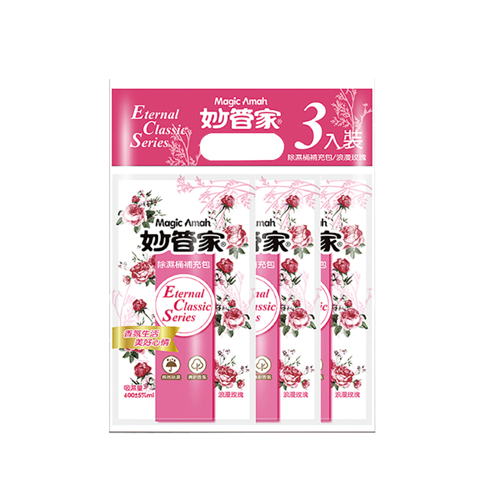 妙管家芳香除濕桶補充包/浪漫玫瑰/600ml/3入|史泰博