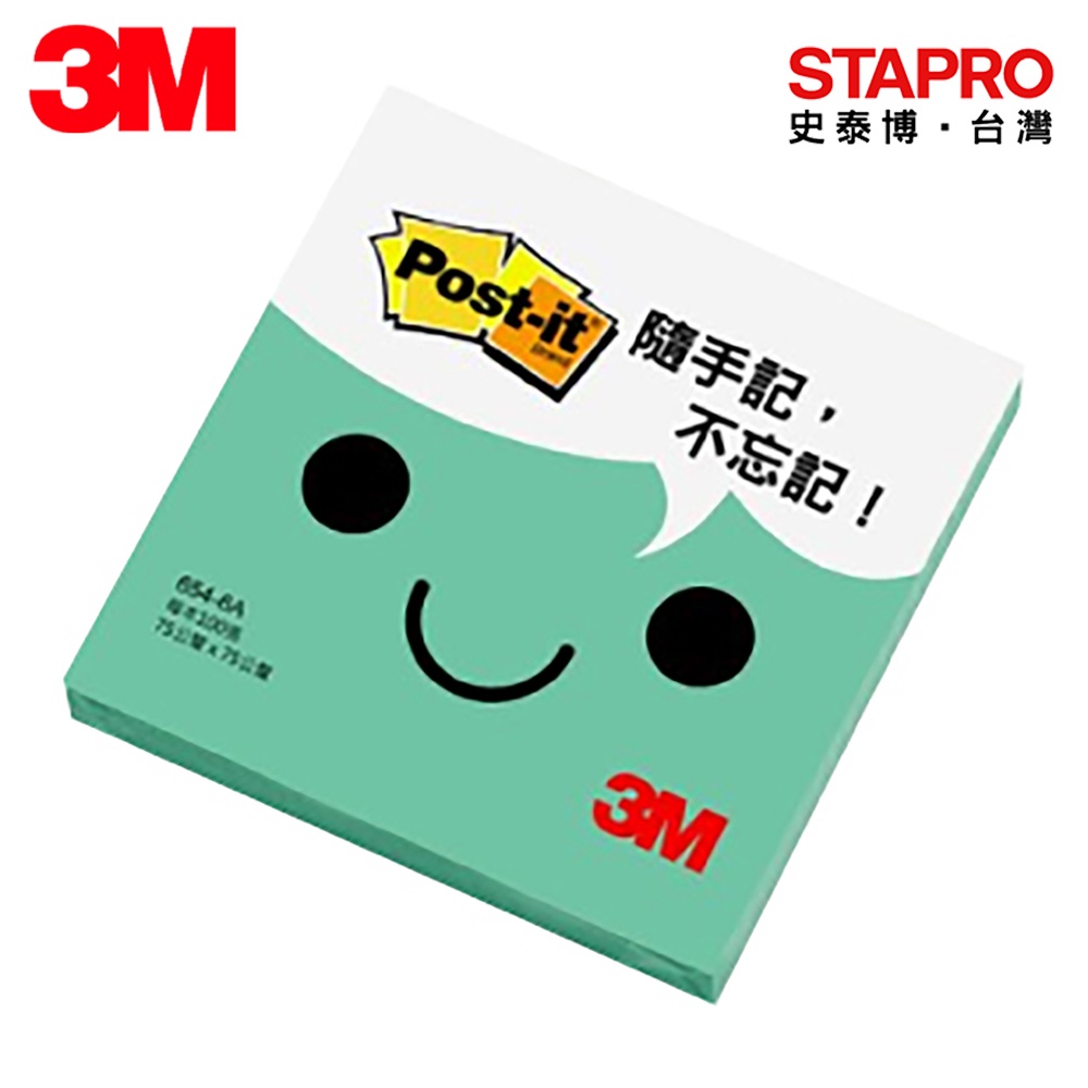 3M post-it 利貼可再貼便條紙 654-6A/3x3吋/75x75mm/湖水綠/100張/本|史泰博