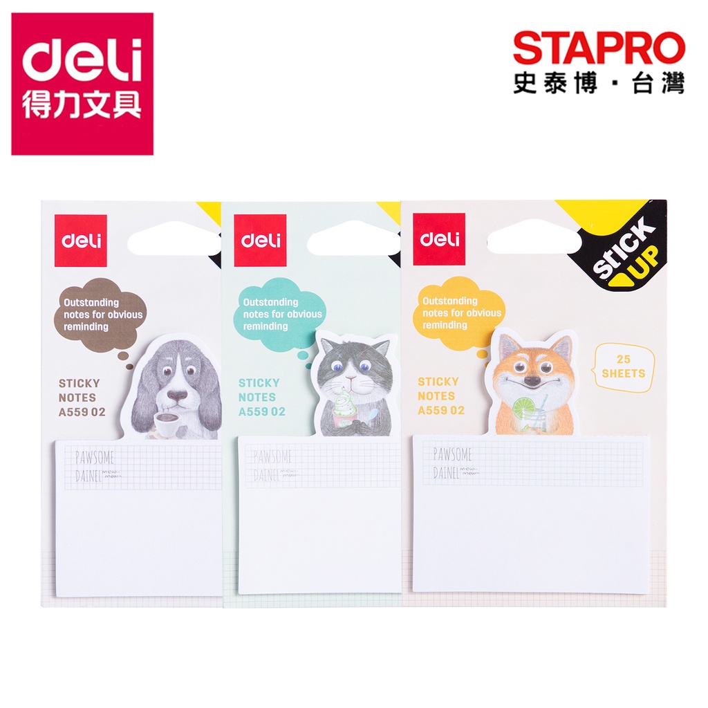 得力Deli 造型便條紙 (EA55902)3x4/動物留言板/25張 混款出貨|史泰博