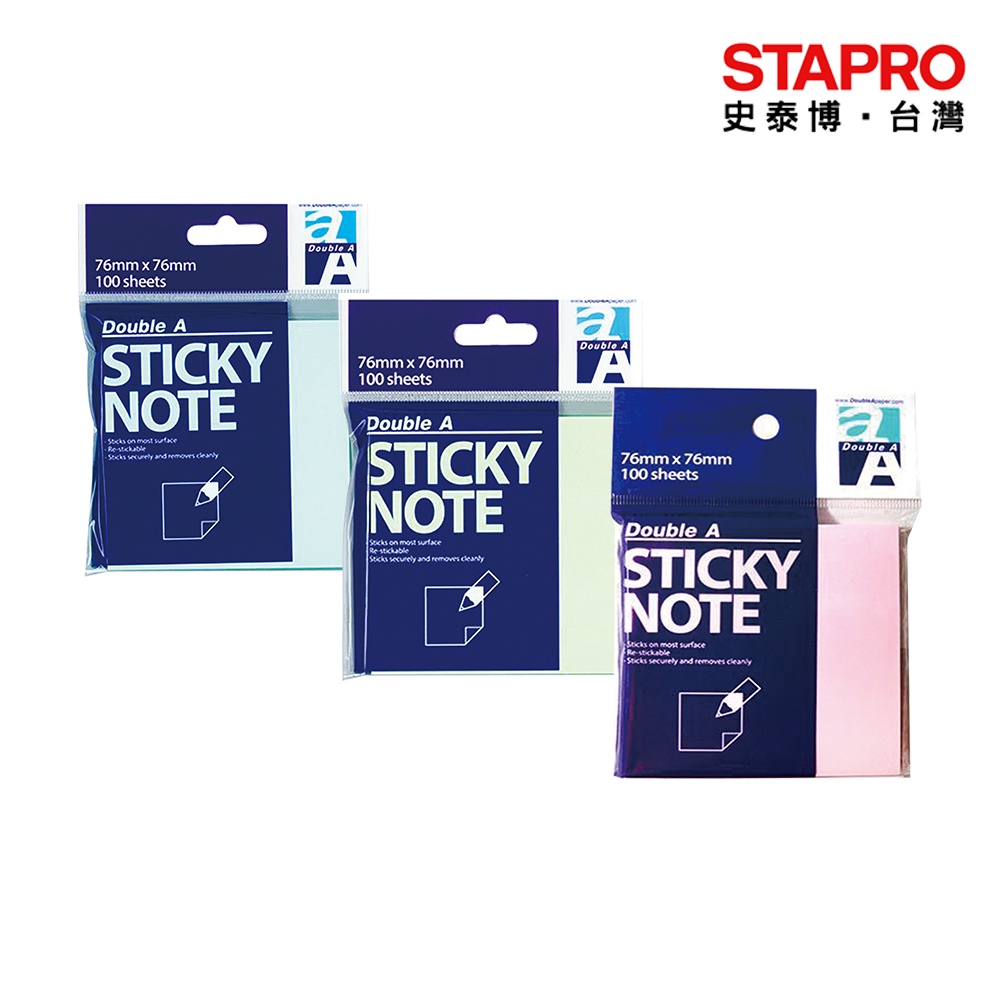 Double A 便利貼 3x3 76x76mm 粉紅色/綠色/藍色 100張|史泰博