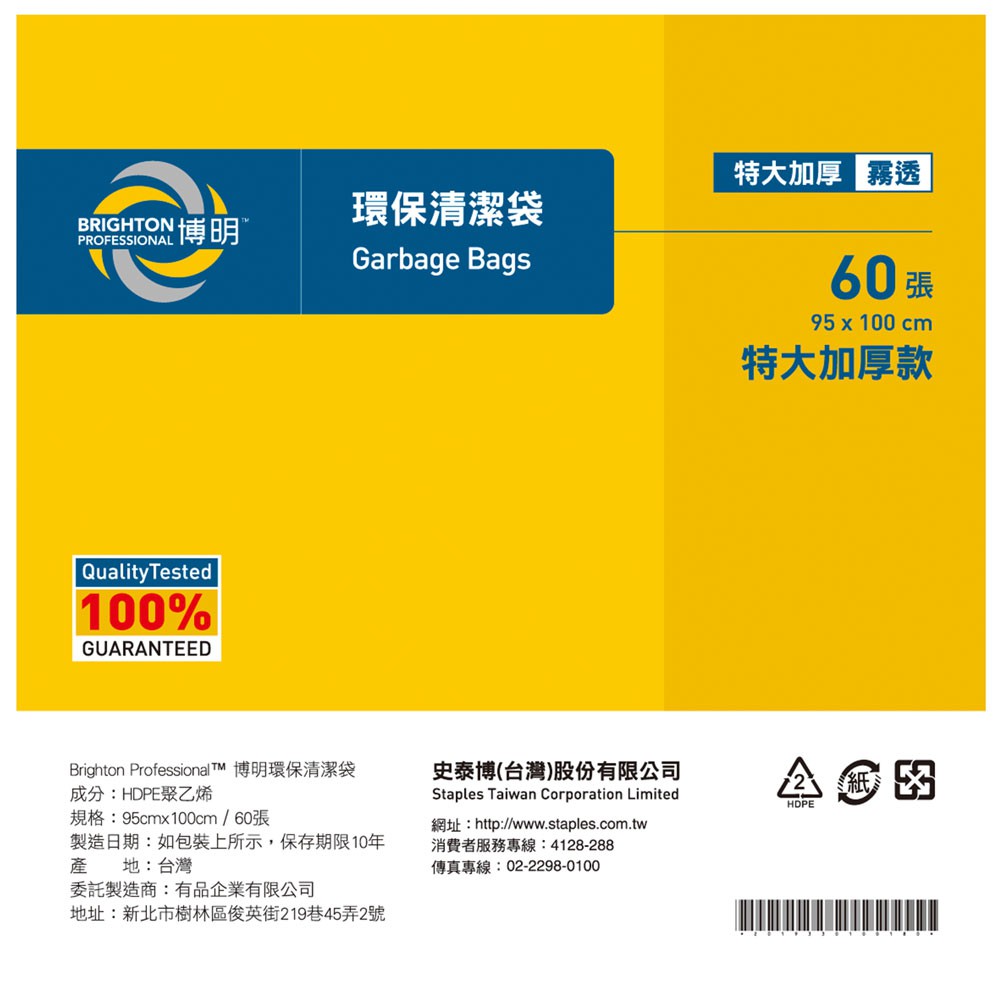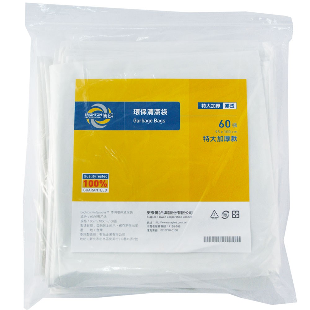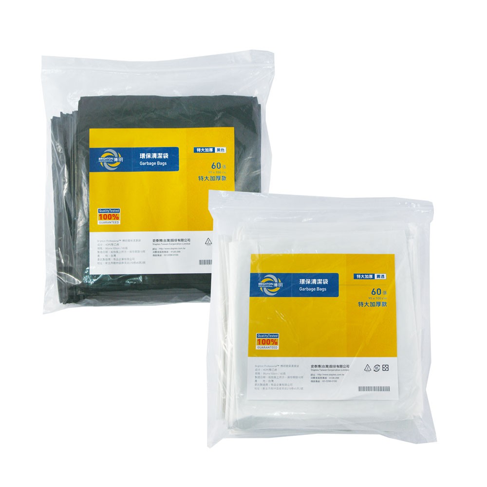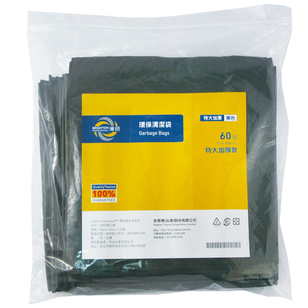 博明BRIGHTON環保清潔袋 垃圾袋 清潔用品 垃圾桶 特大加厚 60張 90x100cm 黑色 霧透|史泰博EZ購
